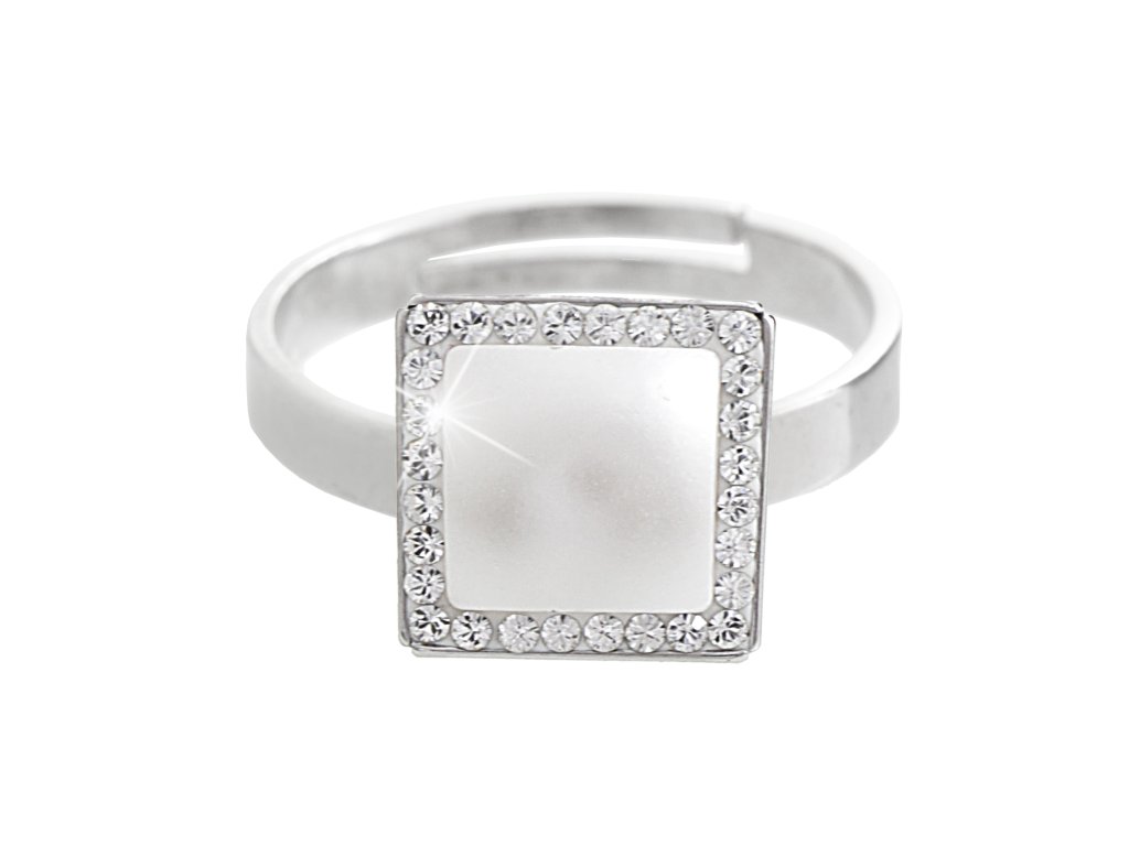 Stříbrný prsten s perlovým čtvercem a krystaly Swarovski Ctystal (Stříbro 925/1000)