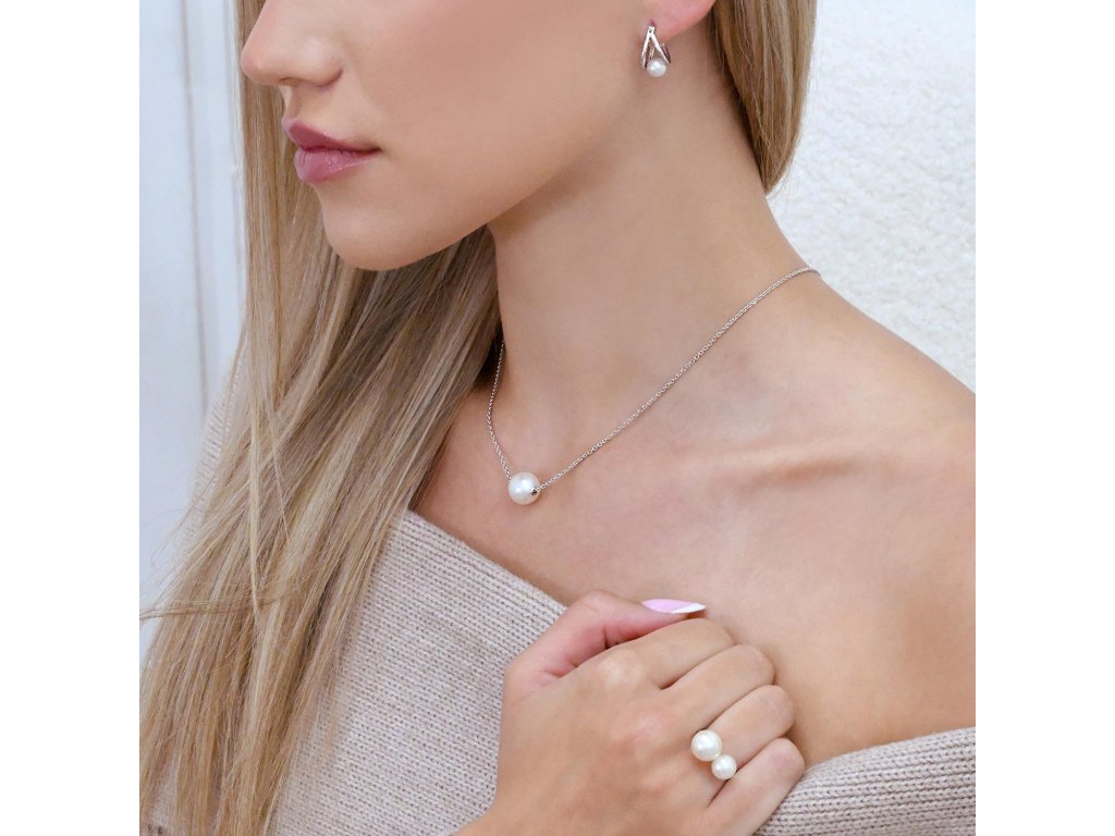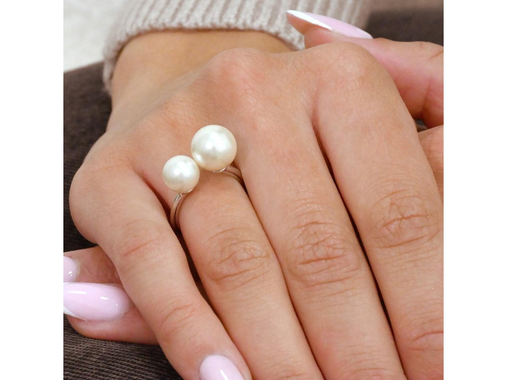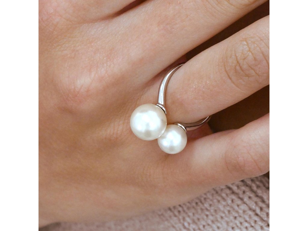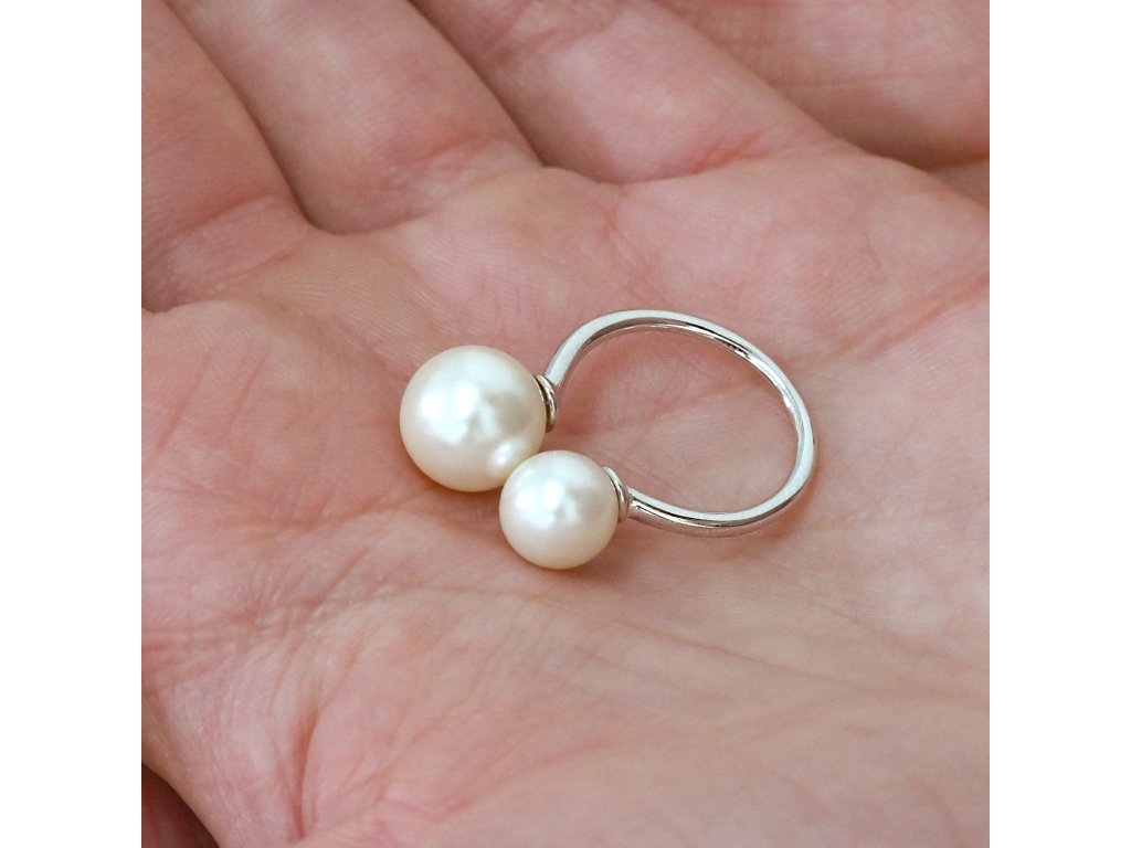 Stříbrný prsten se dvěma Preciosa perlami bílý 35053.1