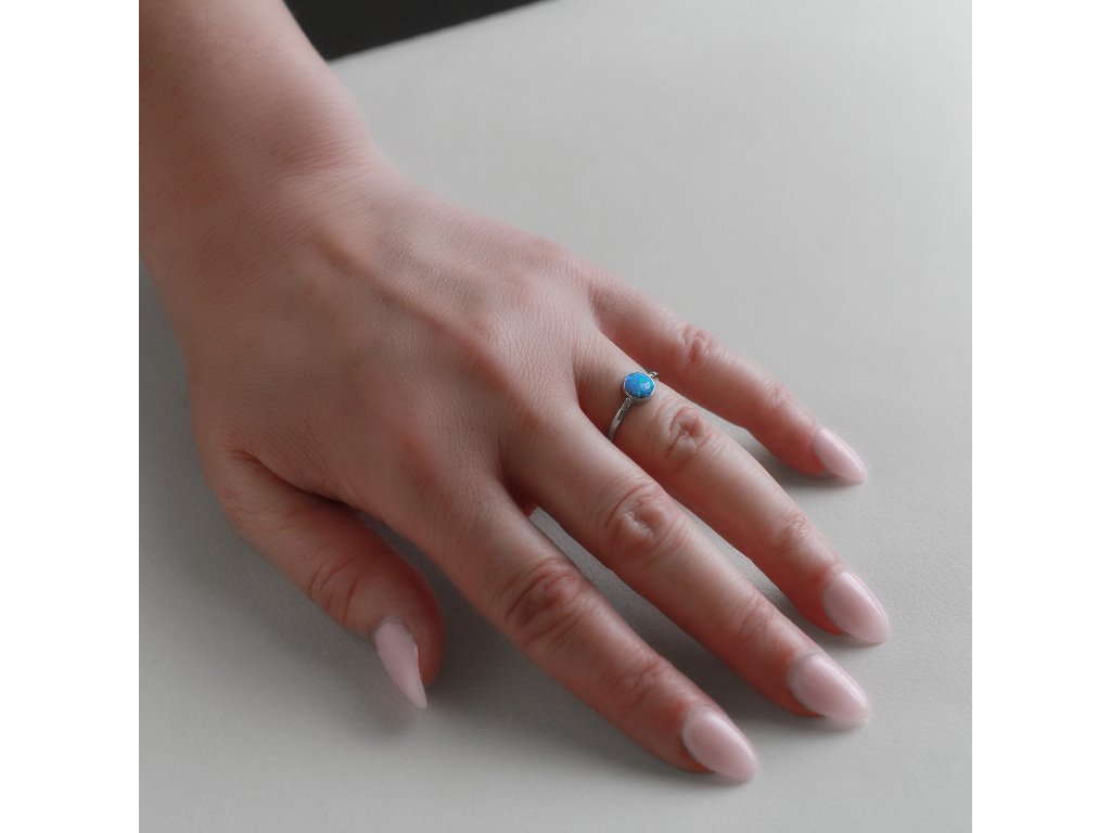 Parametry stříbrného prstenu se syntetickým opálem světle modrý kulatý 15001.3 lt.blue