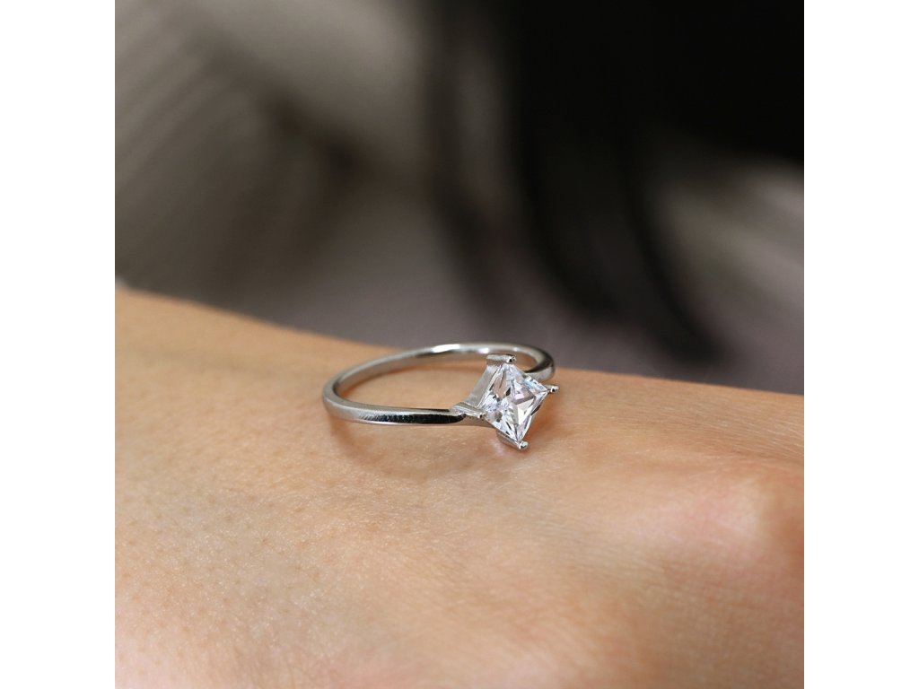 Stříbrný prsten se zirkonem čtverec bílý 15006.1 crystal