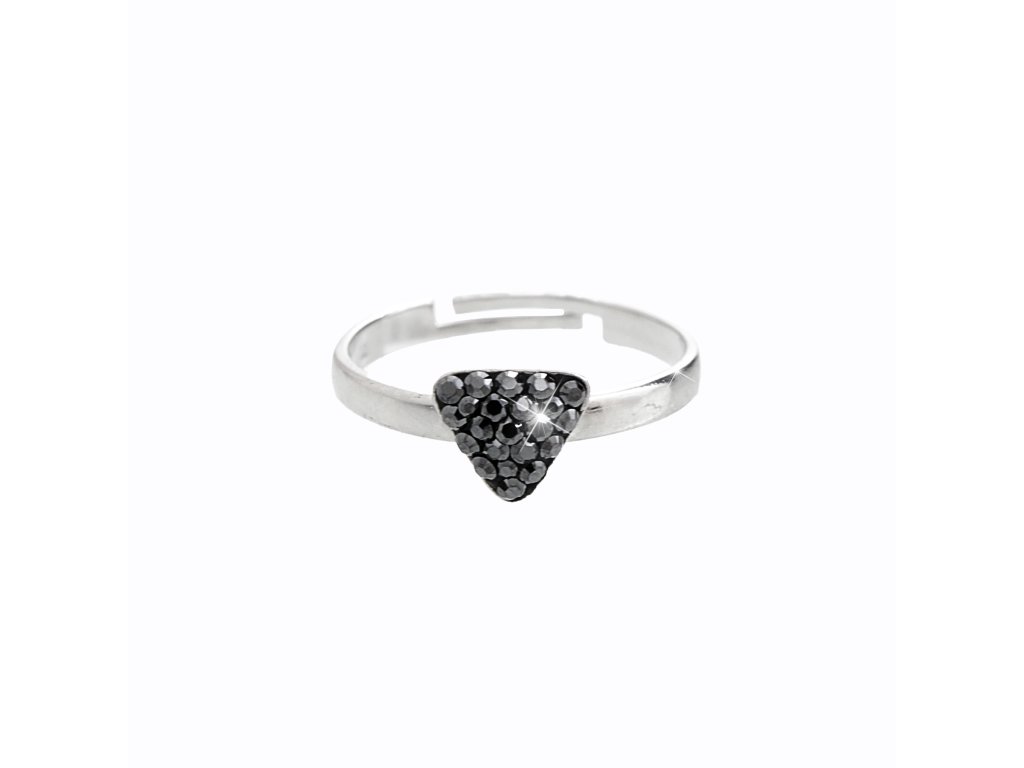 Stříbrný prsten trojúhelníček s krystaly Swarovski Hematit (Stříbro 925/1000)