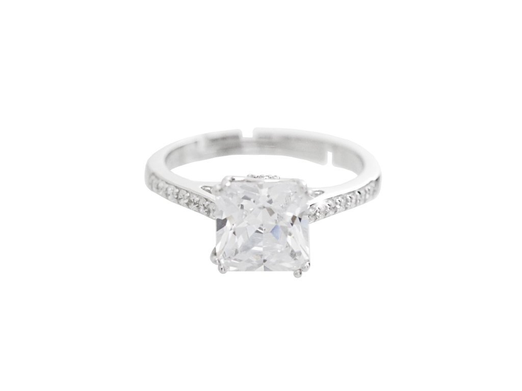 Stříbrný prsten velký čtvercový Kubický zirkon Crystal (Stříbro 925/1000)