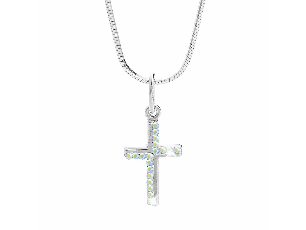 Stříbrný řetízek s mini křížkem osázený krystaly Swarovski AB (Stříbro 925/1000)