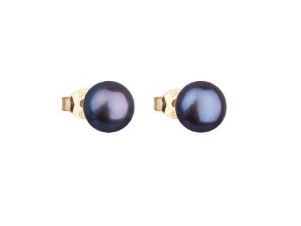 Zlaté 14 karátové náušnice pecky s šedou říční perlou 921042.3