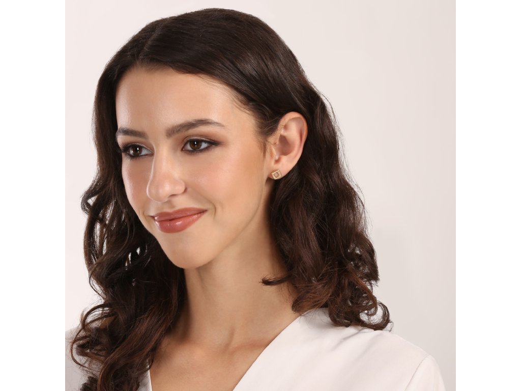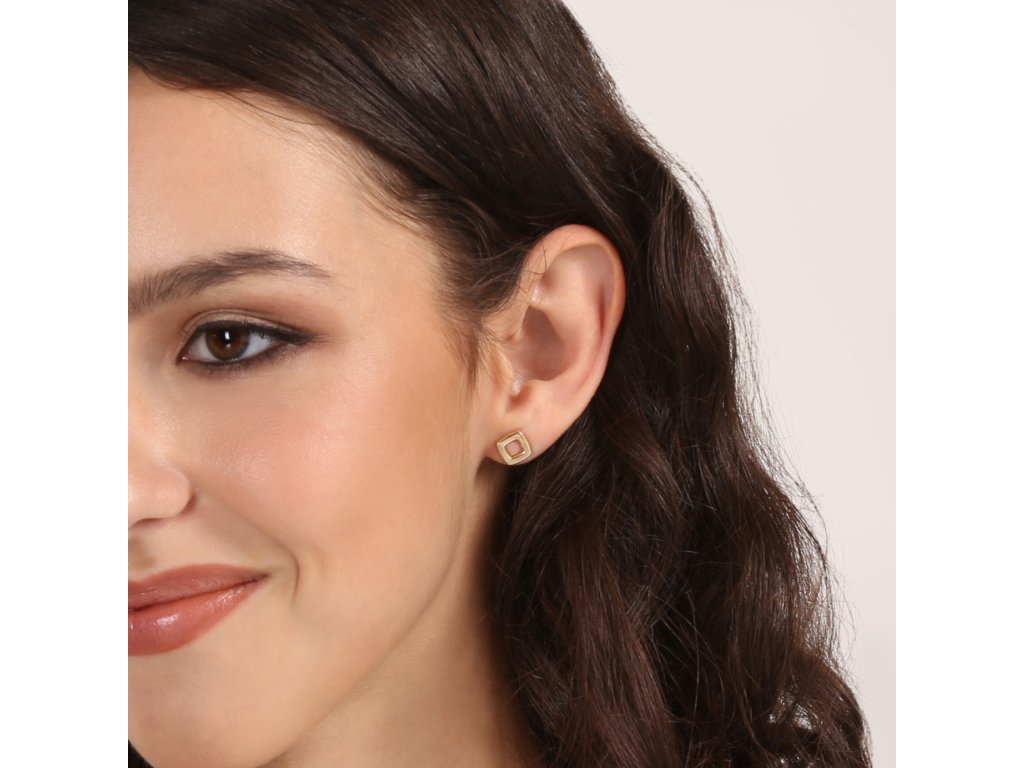 Čistý geometrický design zlatých náušnic s precizně vyvedeným obrysem čtverce přináší moderní a sebevědomý šperk. Náušnice jsou určeny pro ženy, které oceňují minimalistickou eleganci s jasným designovým rukopisem.