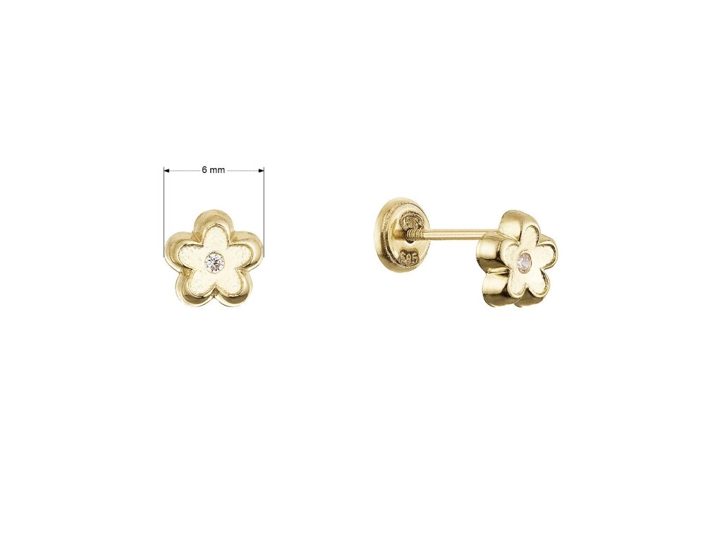 Zlaté 14karátové náušnice kytička se zirkonem 91Z00065