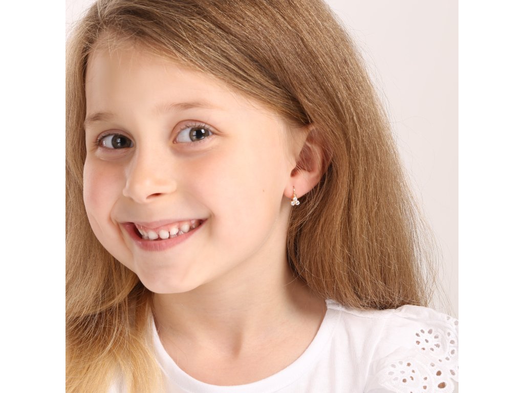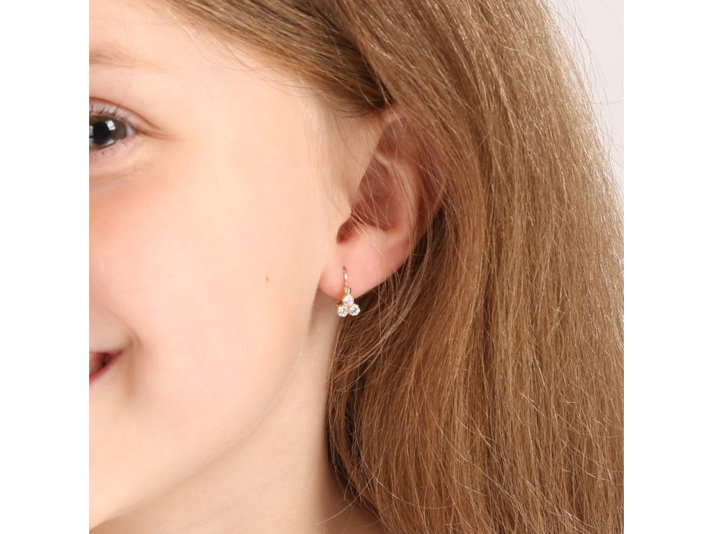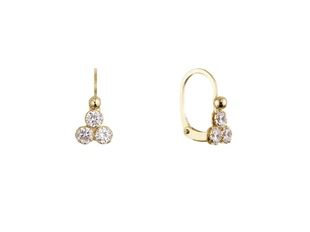 Náušnice z prémiového 14karátového žlutého zlata nabízejí roztomilý tvar čtyř propojených kuliček připomínajících drobný vinný hrozen. Tři z těchto něžných kuliček jsou precizně osázeny bílými zirkony, které dodávají šperku jemný třpyt. Bezpečnostní zapínání na brizuru je speciálně navrženo pro nejmenší děti od narození - zaručuje maximální pohodlí a naprostou bezpečnost při nošení. Náušnice jsou lehké, šetrné k dětské pokožce a ideální jako první šperk pro malé holčičky.