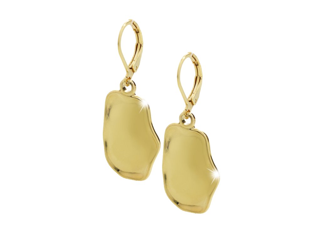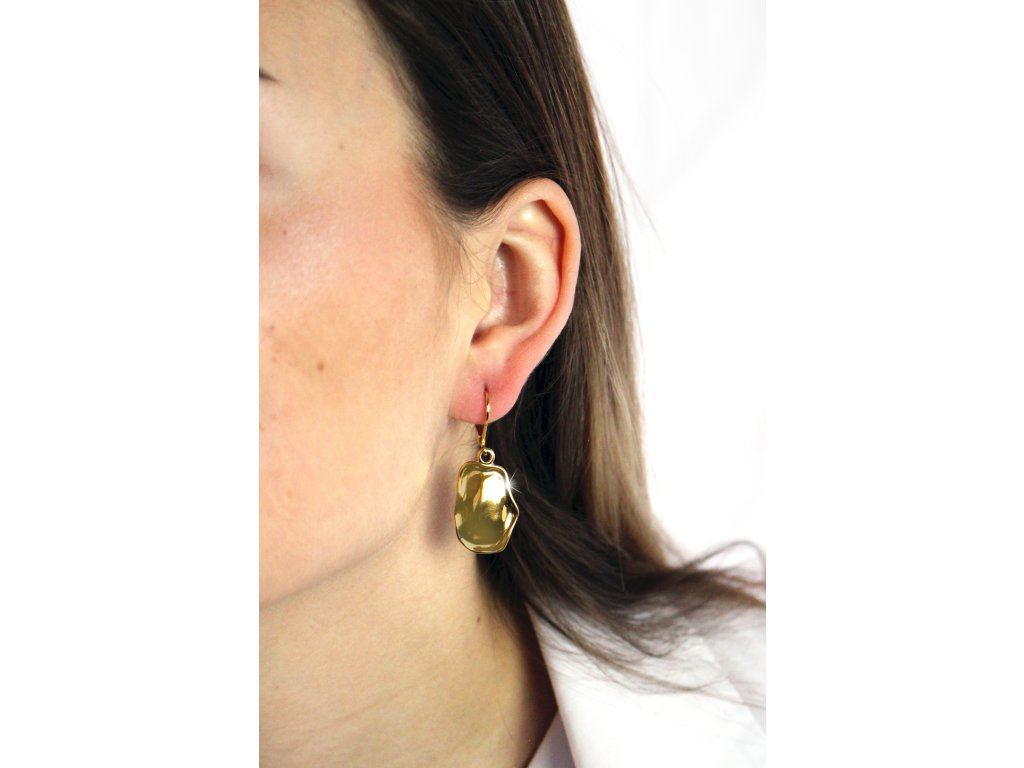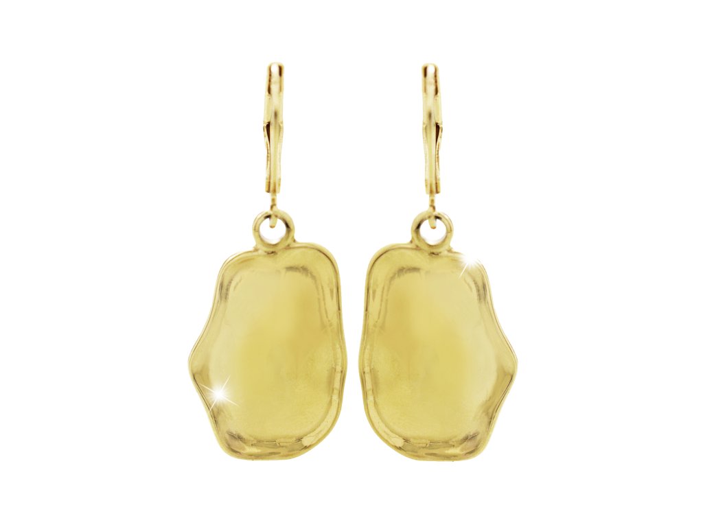 Zlaté ocelové náušnice klapky s nepravidelným plným oválem bez krystalů