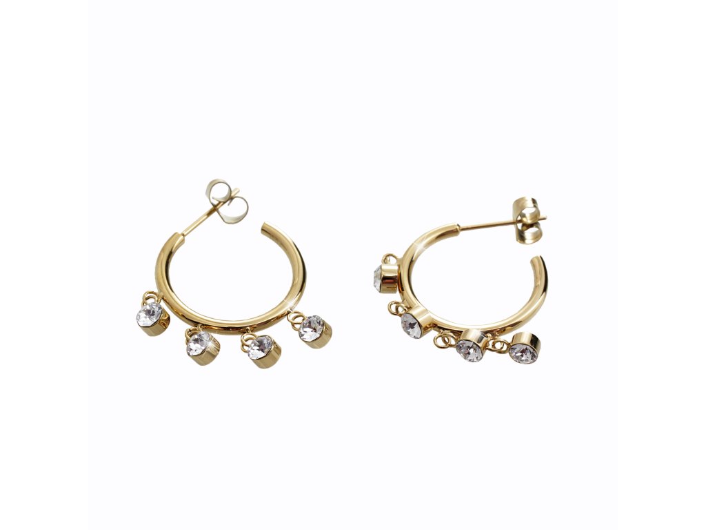 Zlaté ocelové náušnice kreole čtyři jednotlivé krystaly Swarovski Crystal