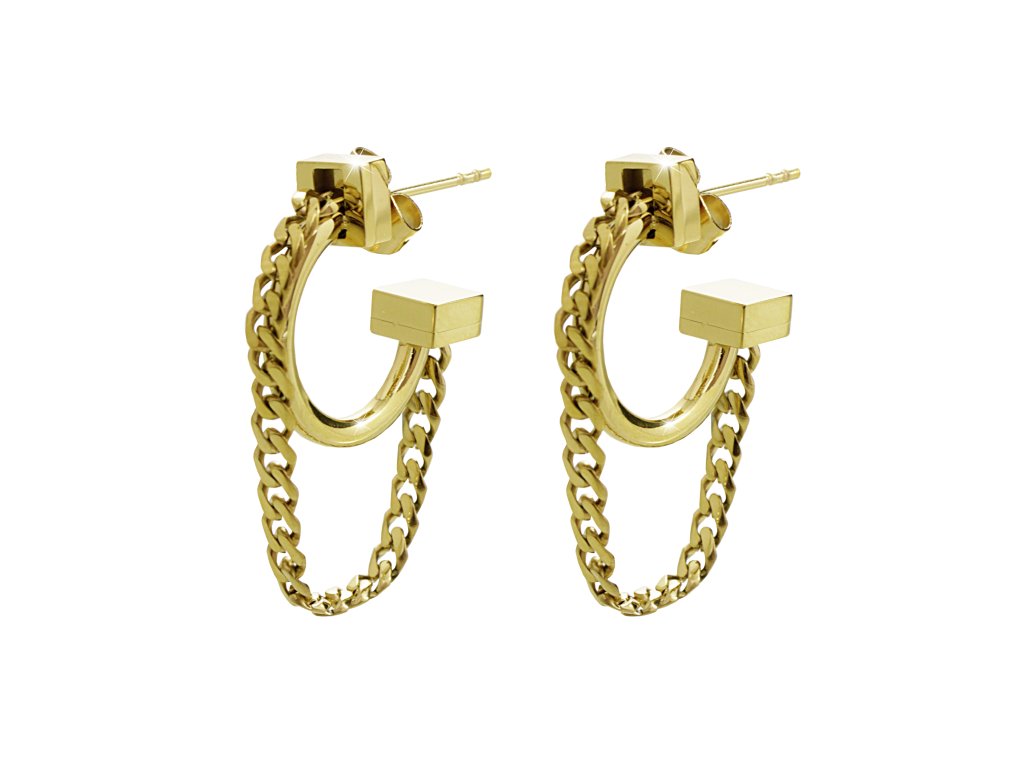 Zlaté ocelové náušnice kreole kroužek a řetízek bez krystalů