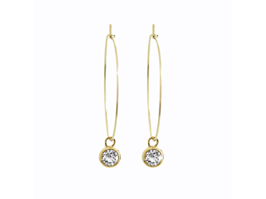 Zlaté ocelové náušnice provlékací s jedním krystalem Swarovski Crystal na velkém kruhu