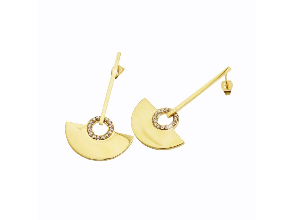 Zlaté ocelové náušnice puzety dlouhé s vějířem a s krystaly Swarovski Golden Shadow