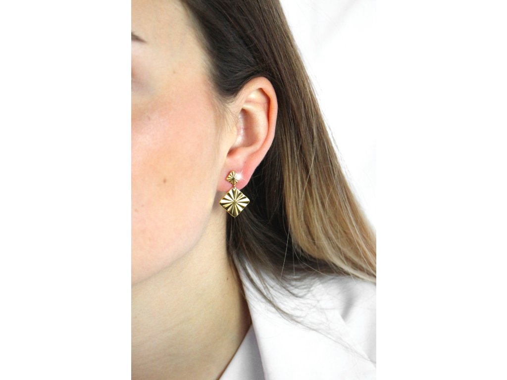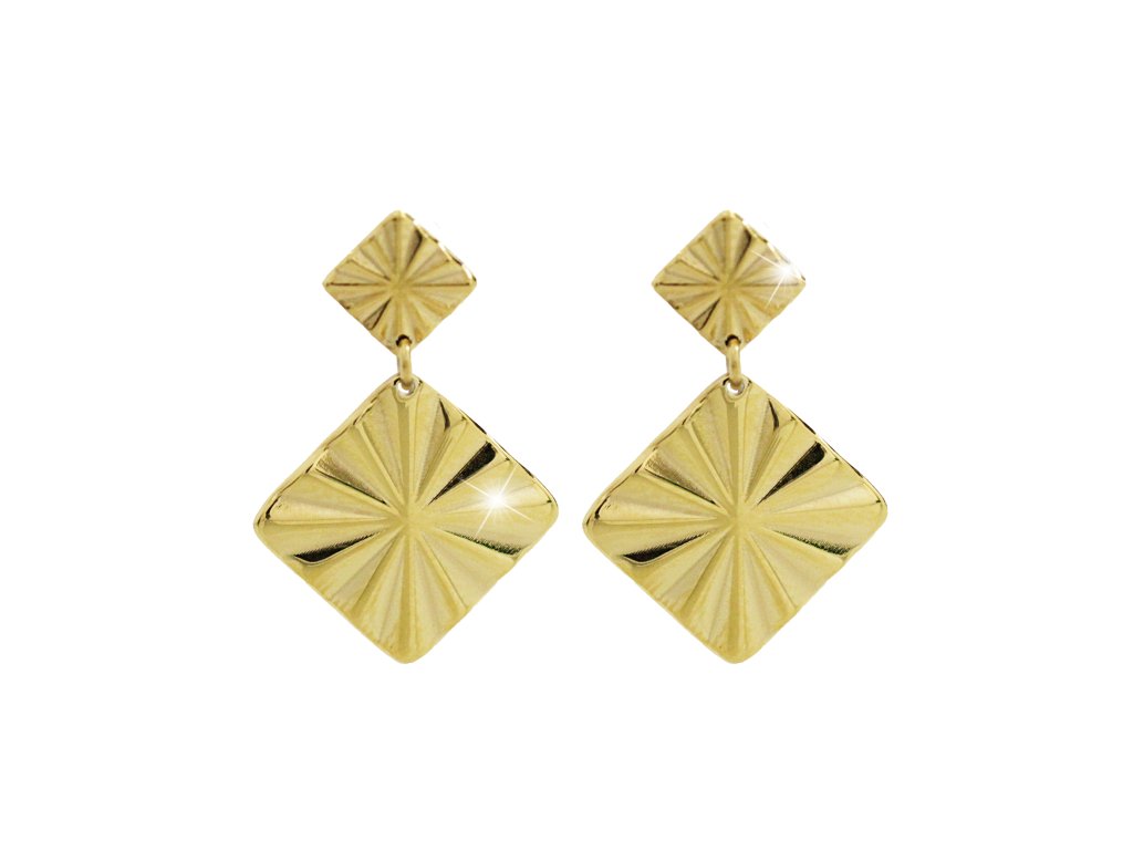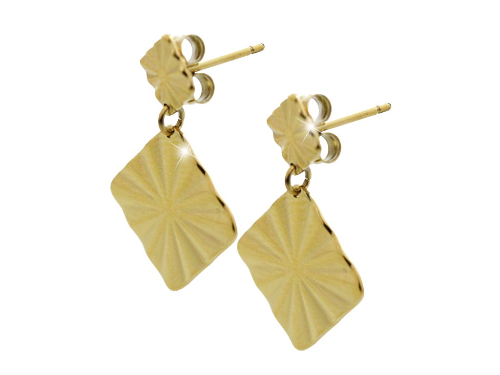 Zlaté ocelové náušnice puzety dva čtverce na koso bez krystalů