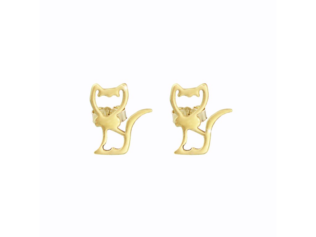 Zlaté ocelové náušnice puzety malá kočička bez krystalů