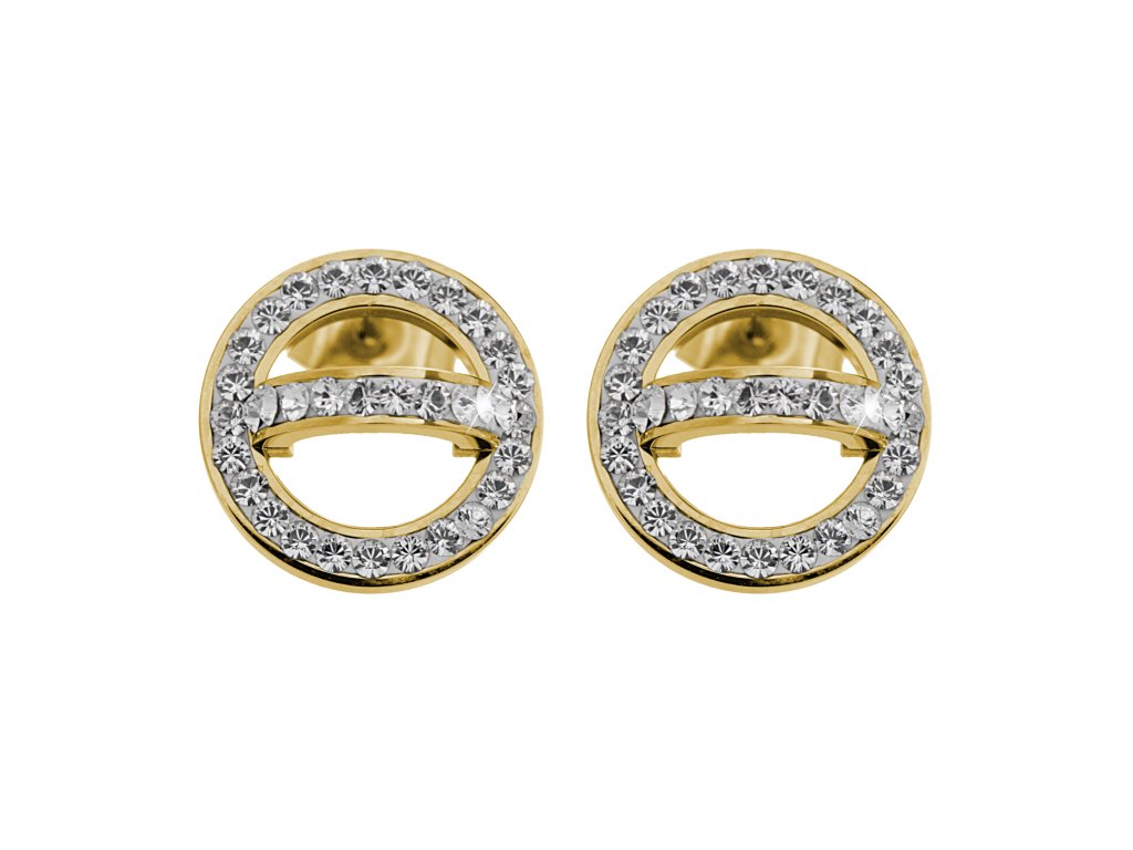 Zlaté ocelové náušnice puzety oblouček na kruhu s krystaly Swarovski Crystal