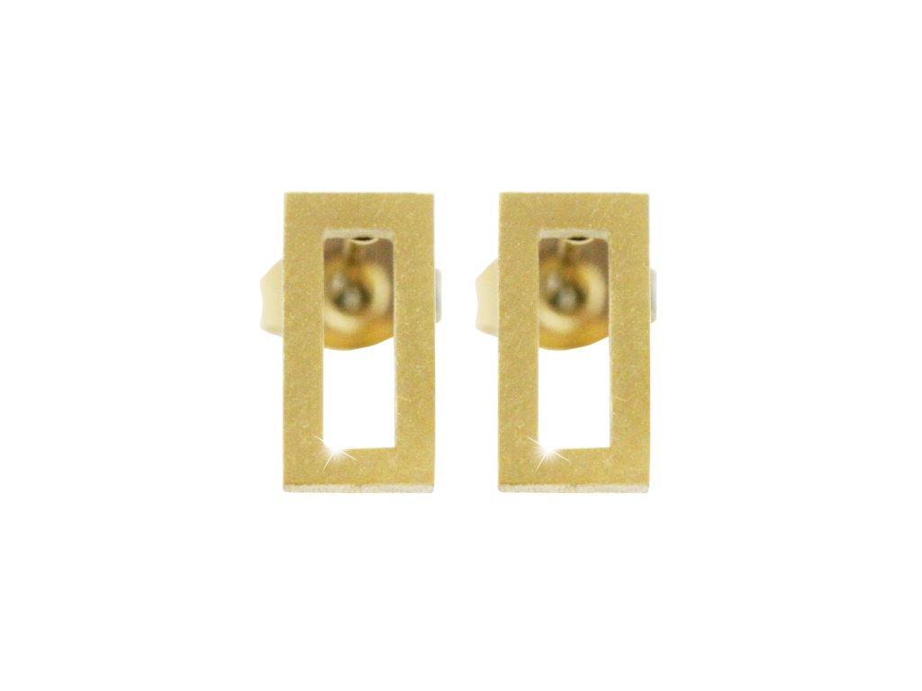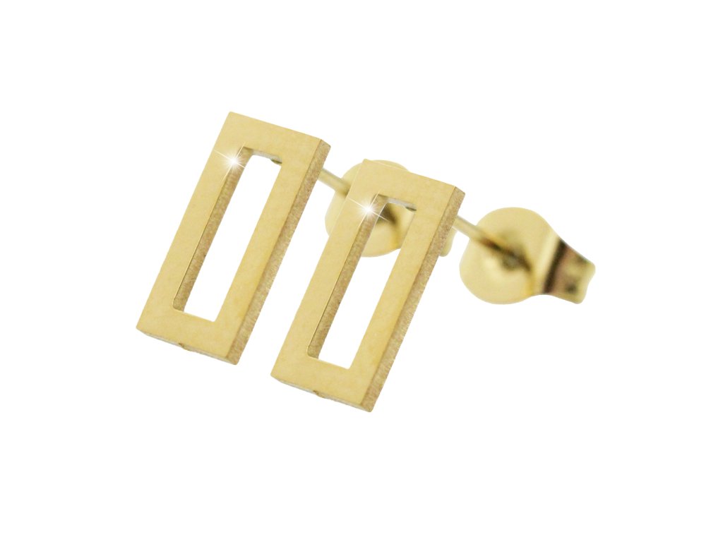 Zlaté ocelové náušnice puzety obrysový obdélník bez krystalů
