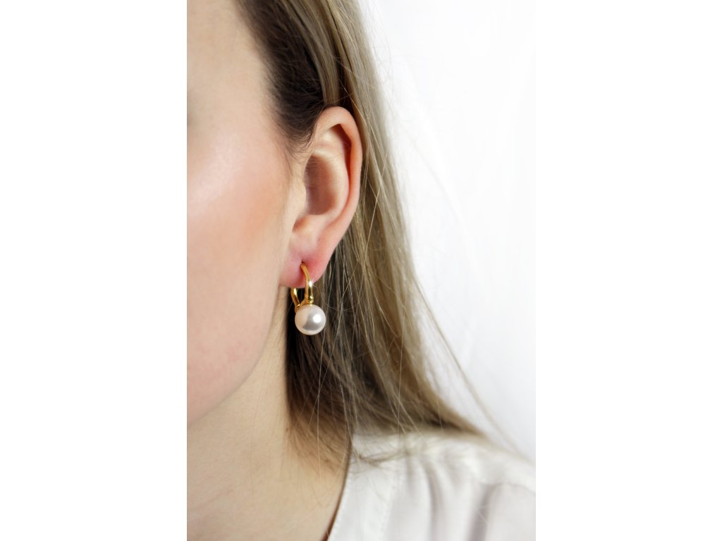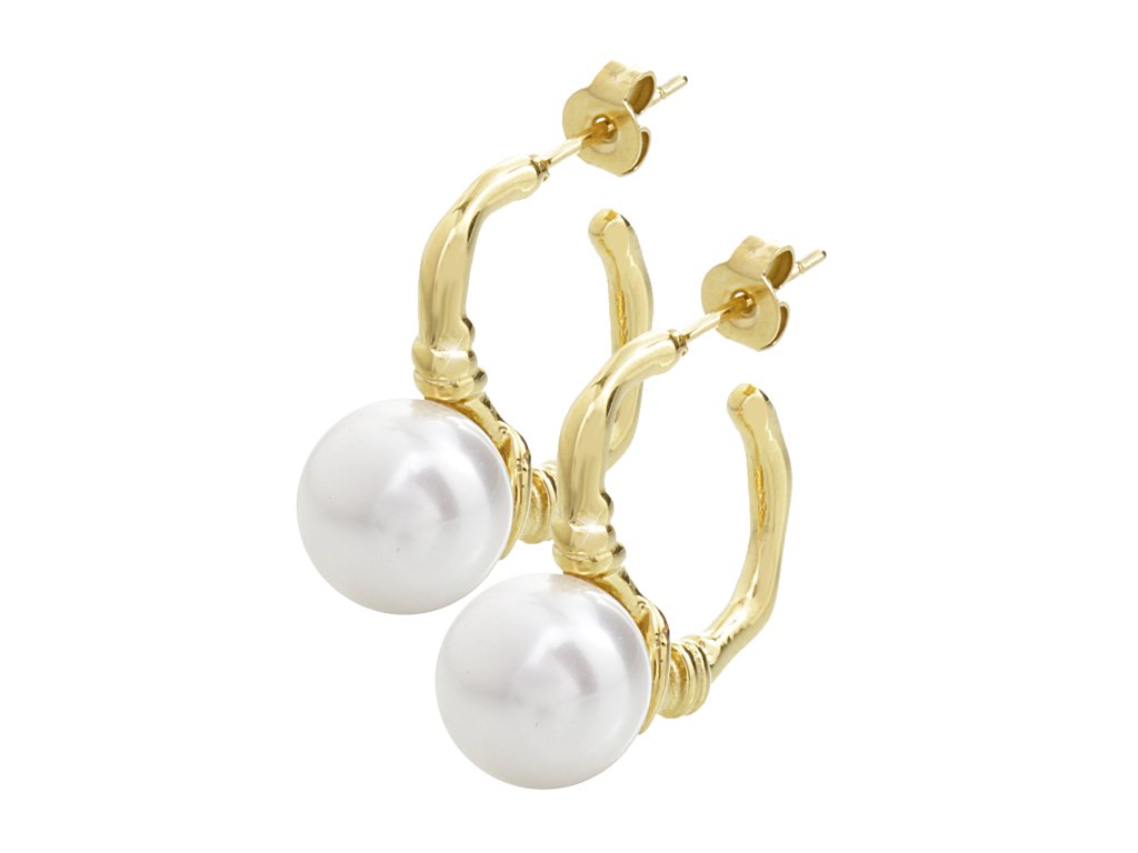 Zlaté ocelové náušnice puzety s perlou na nepravidelném kroužku White
