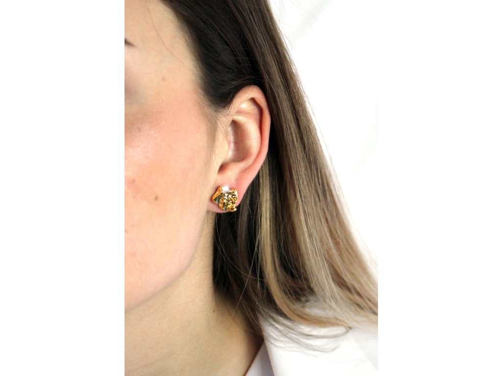 Zlaté ocelové náušnice puzety se zmačkaným efektem bez krystalů