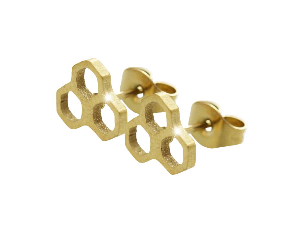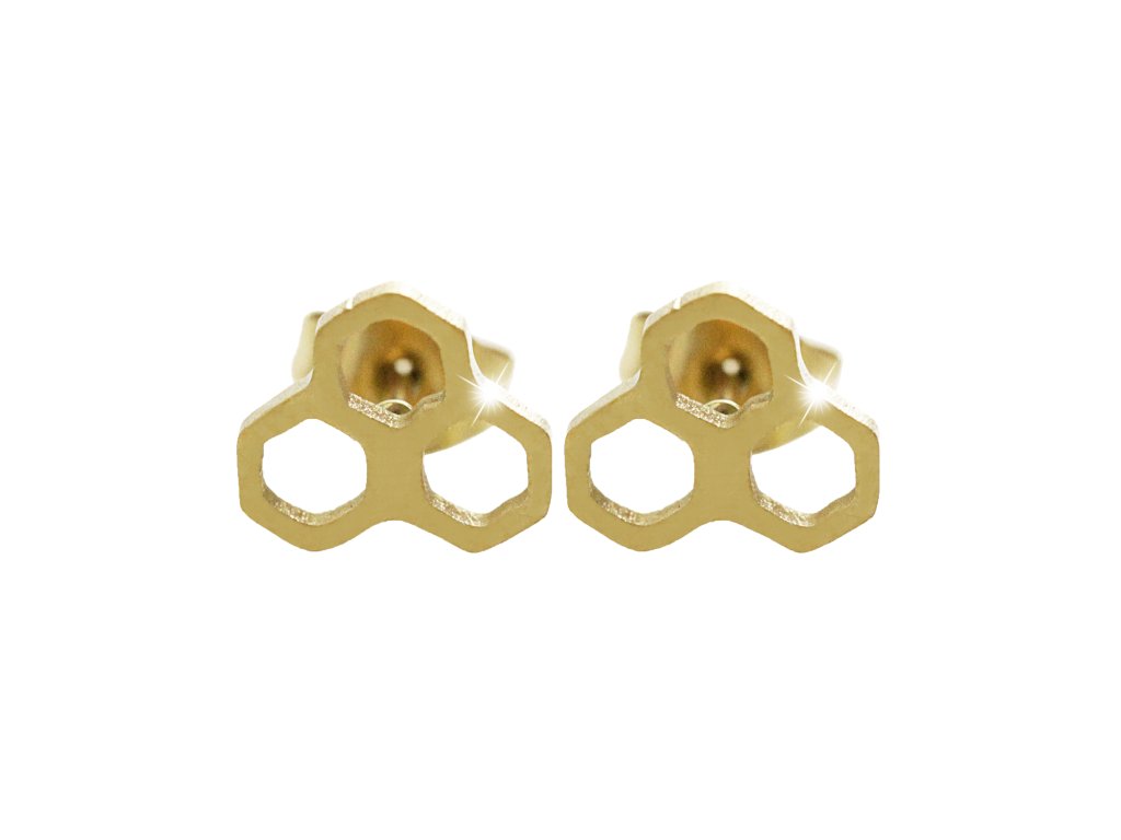 Zlaté ocelové náušnice puzety včelí plástev bez krystalů