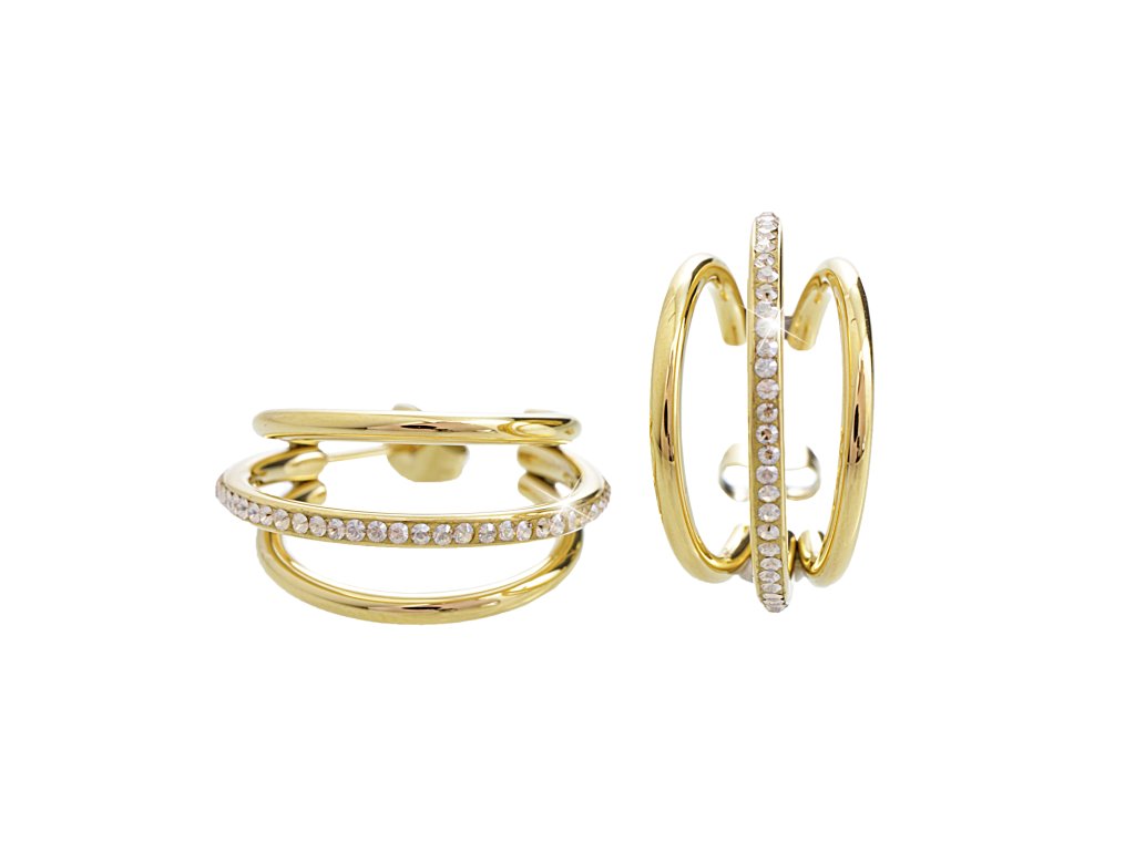 Zlaté ocelové náušnice trojité kreole s krystaly Swarovski Golden Shadow