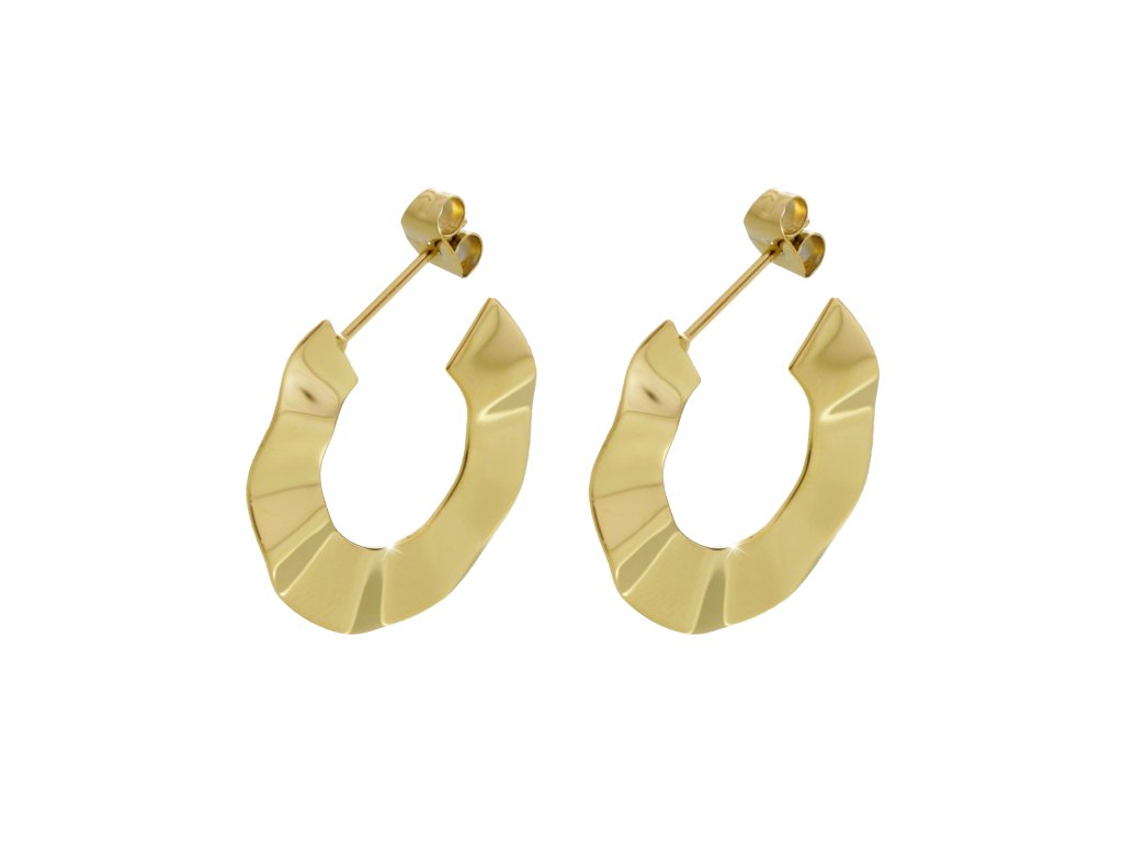 Zlaté ocelové náušnice vlnité kreole bez krystalů