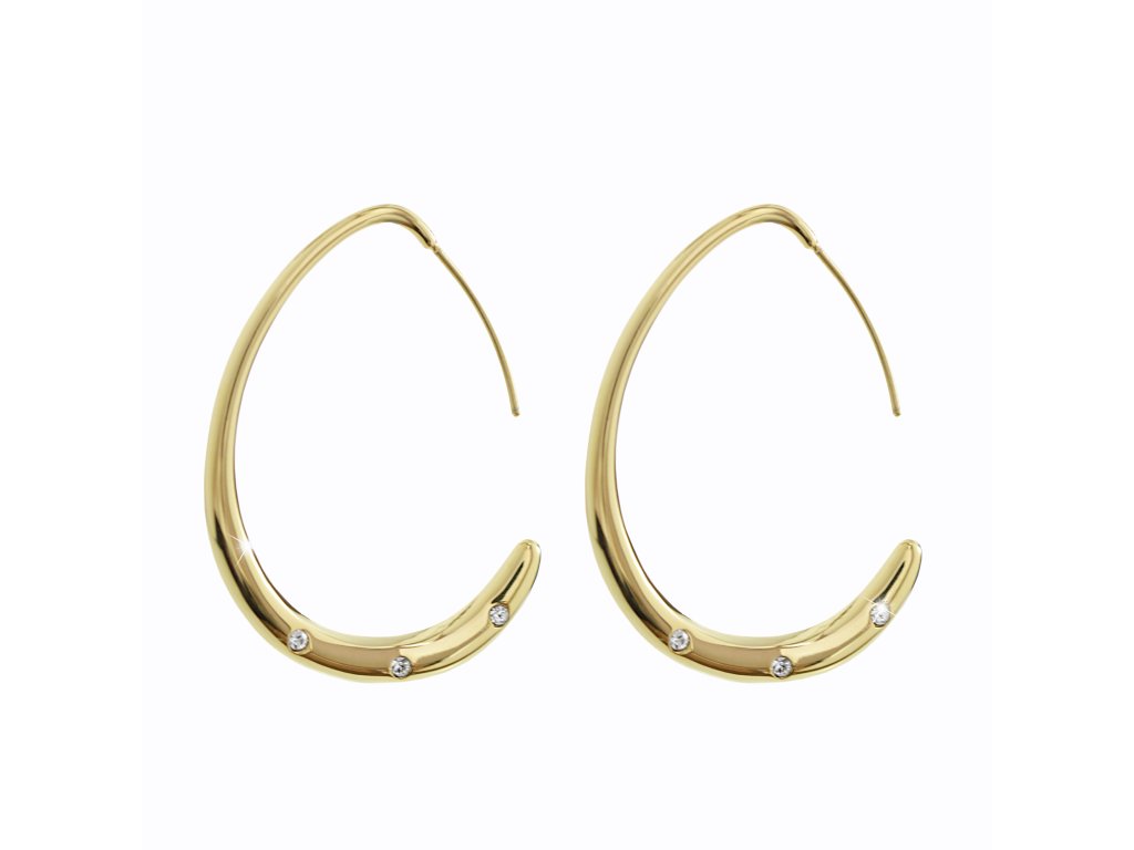 Zlaté ocelové provlékací náušnice ve tvaru kapky s krystaly Swarovski Crystal