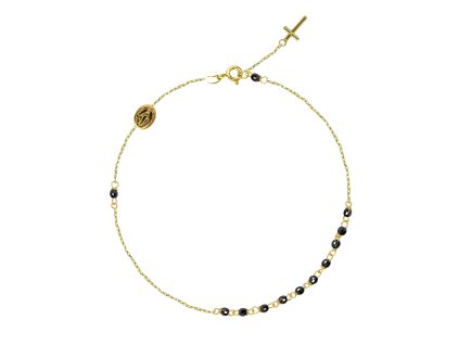 Zlatý 14 karátový náhrdelník růženec s křížem a medailonkem s Pannou Marií RŽ01 černý