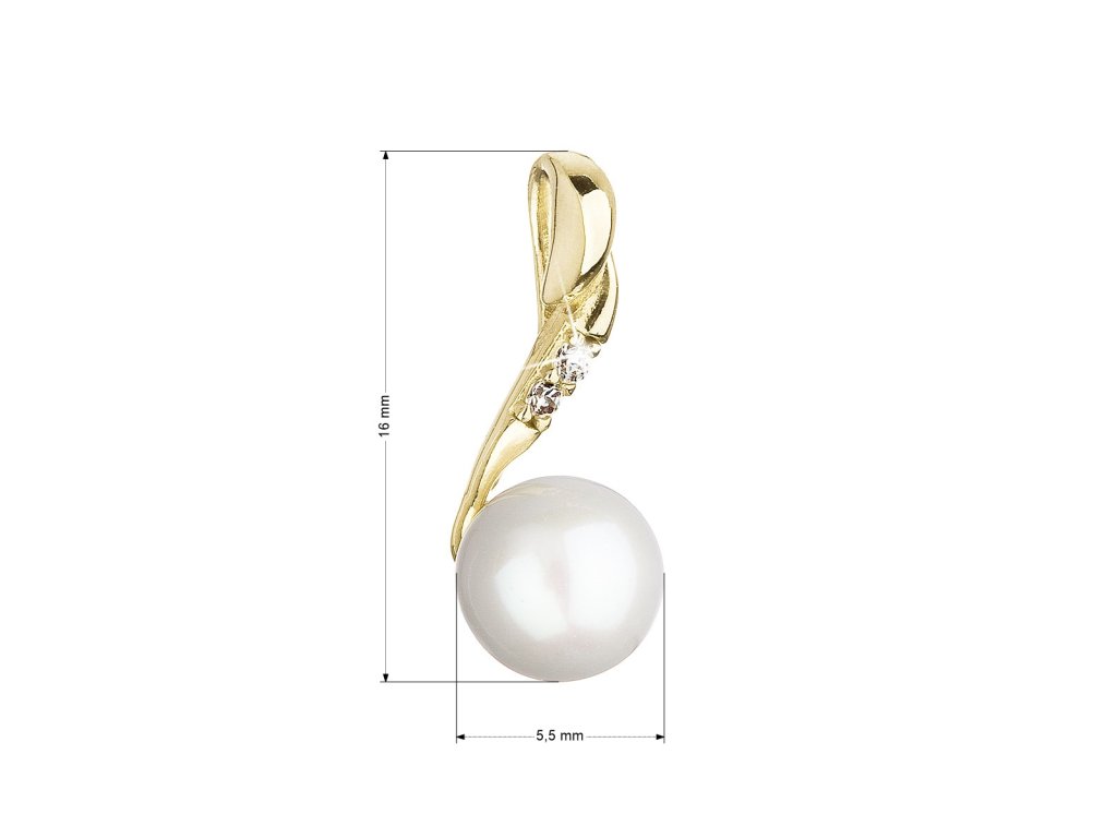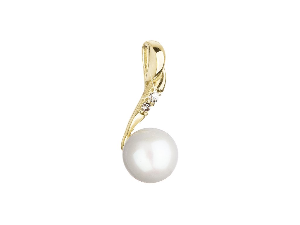 Zlatý 14 karátový přívěsek žluté zlato s bílou říční perlou a zirkony 94PZ00007