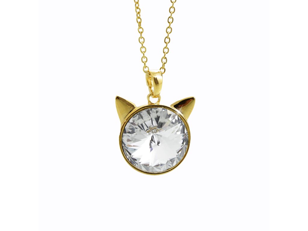 Zlatý náhrdelník z bižuterní slitiny velká kočičí hlava s rivoli Swarovski Crystal