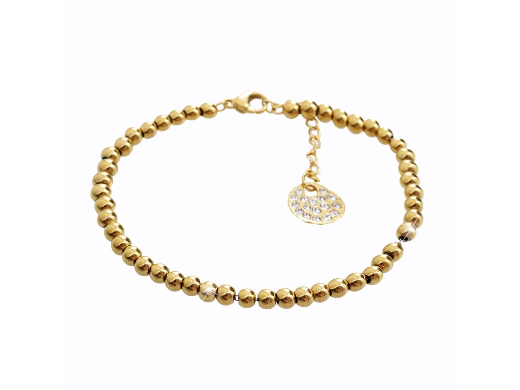 Zlatý ocelový kuličkový náramek s krystaly Swarovski Crystal