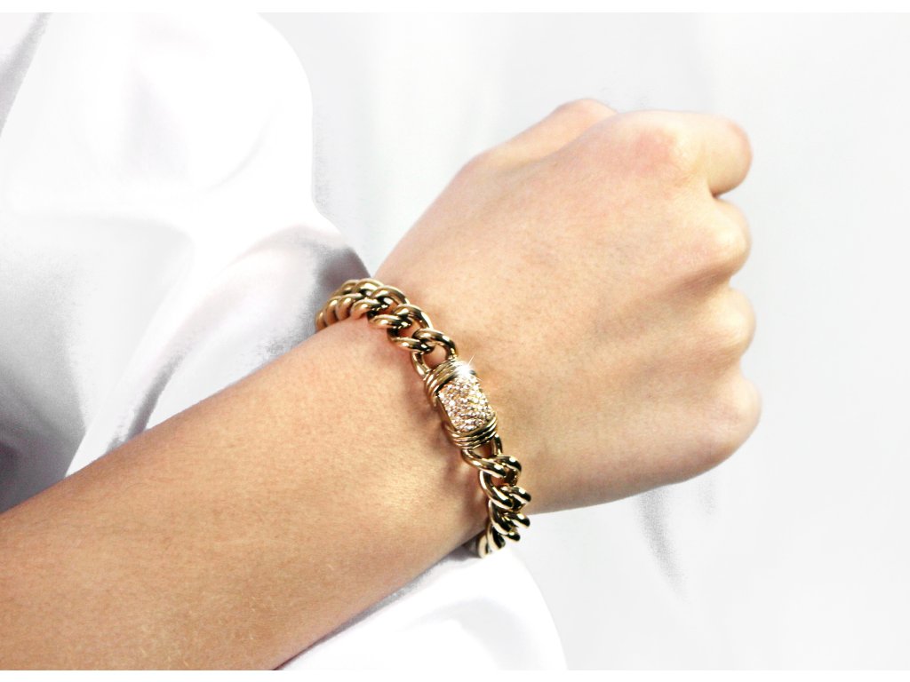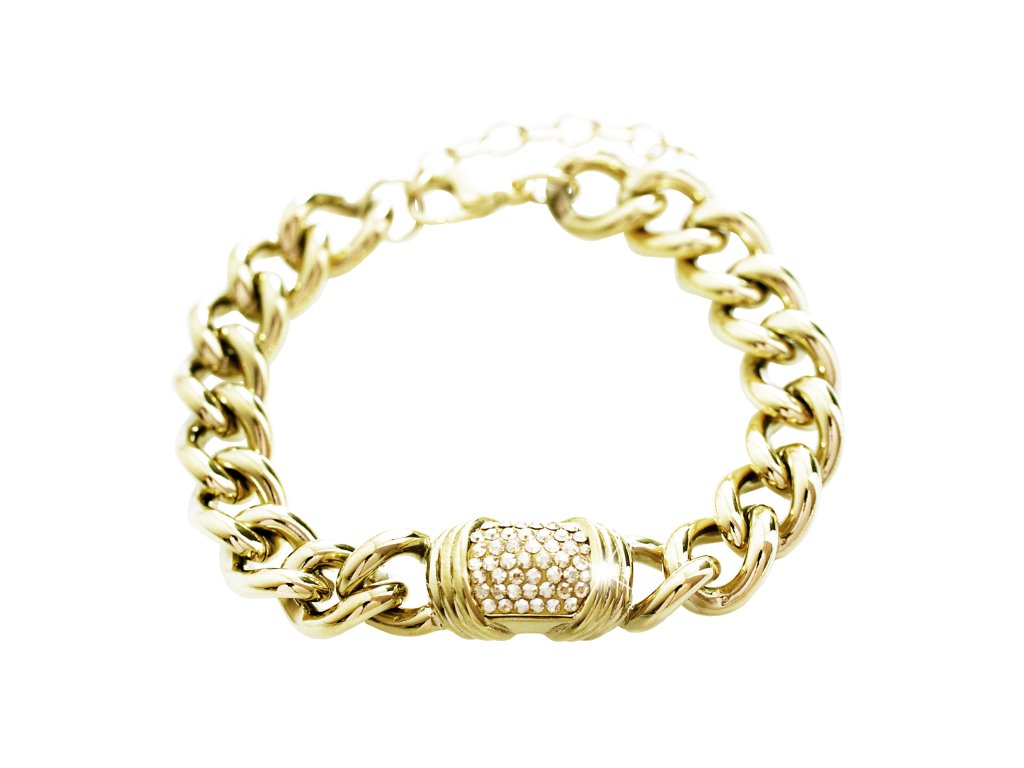 Zlatý ocelový masivní náramek řetěz s ozdobným elementem osázený krystaly Swarovski Golden Shadow
