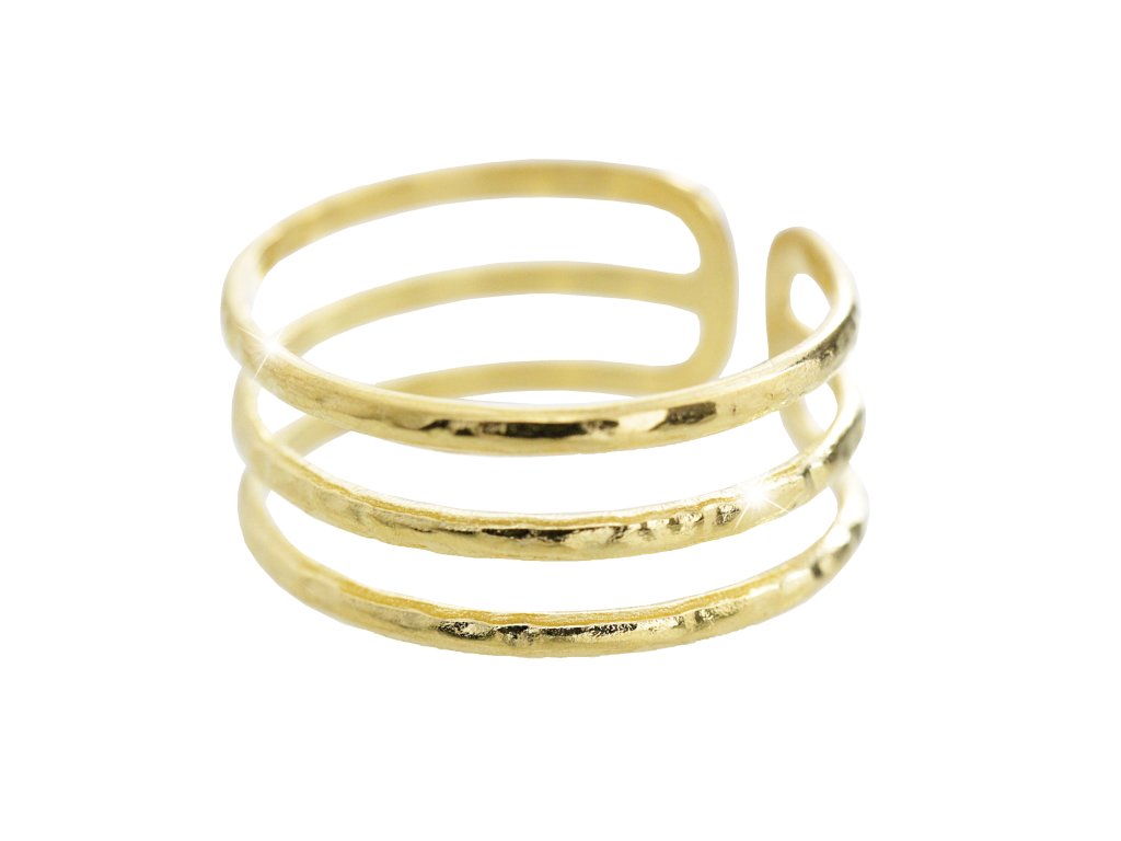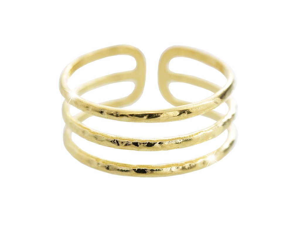 Zlatý ocelový masivní prstem tři pomačkané kruhy bez krystalů