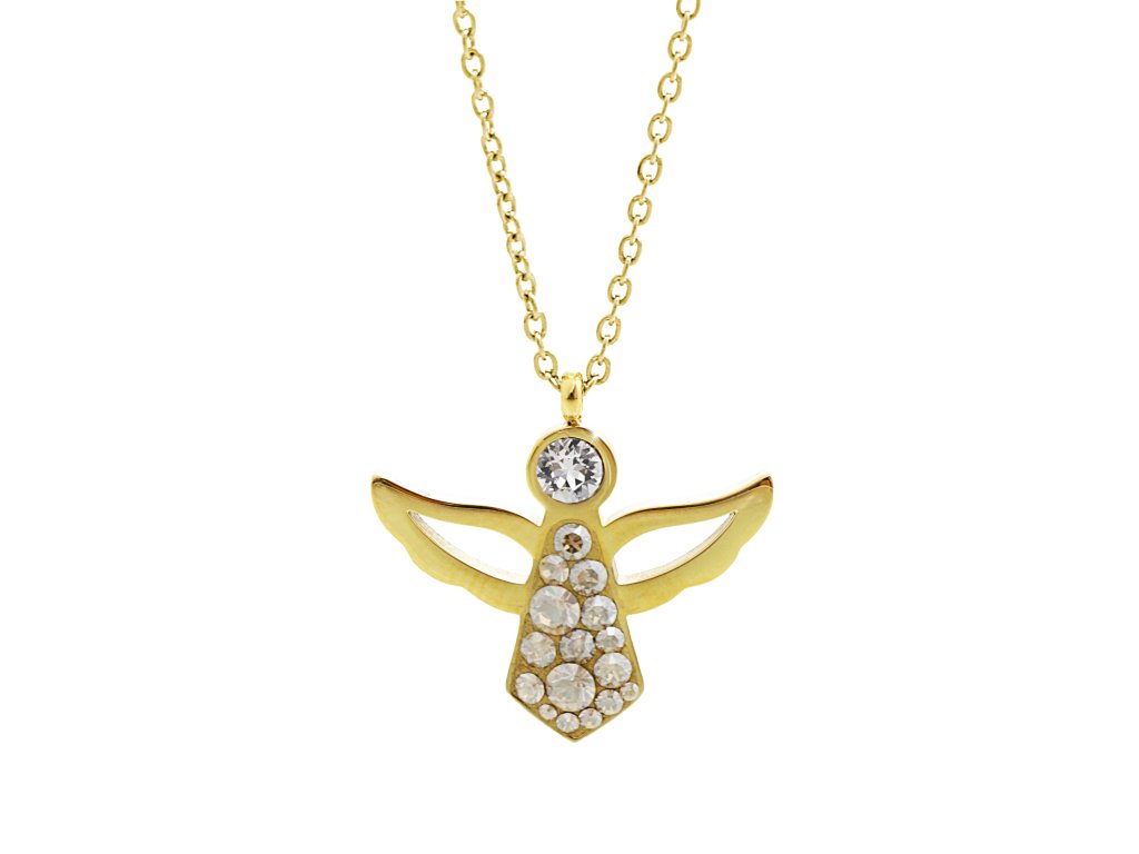 Zlatý ocelový náhrdelník anděl v letu s krystaly Swarovski Golden Shadow