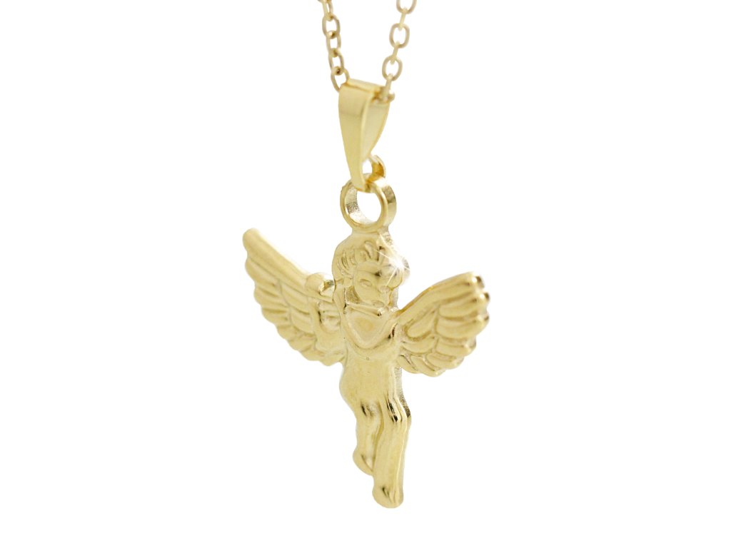 Zlatý ocelový náhrdelník andělíček hrající na píšťalku bez krystalů