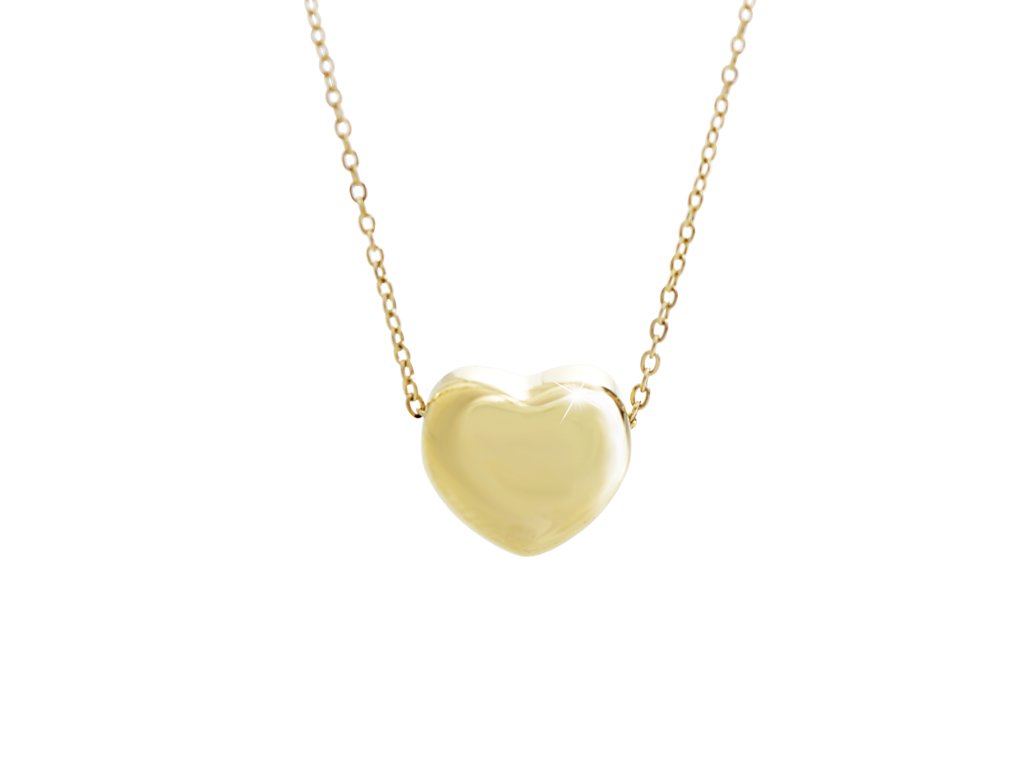 Zlatý ocelový náhrdelník baculaté průvlakové srdíčko bez krystalů