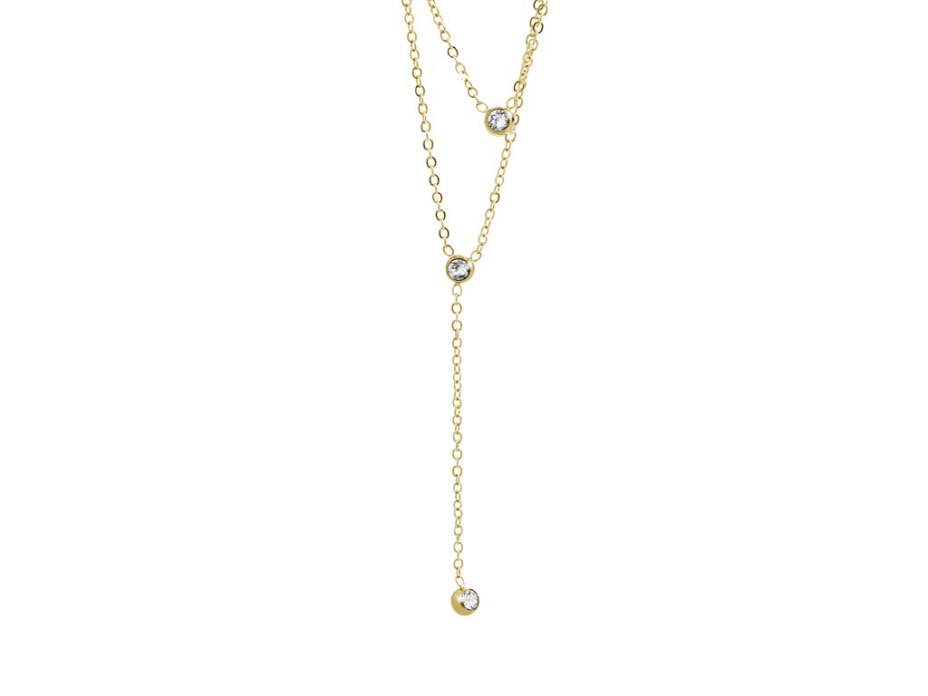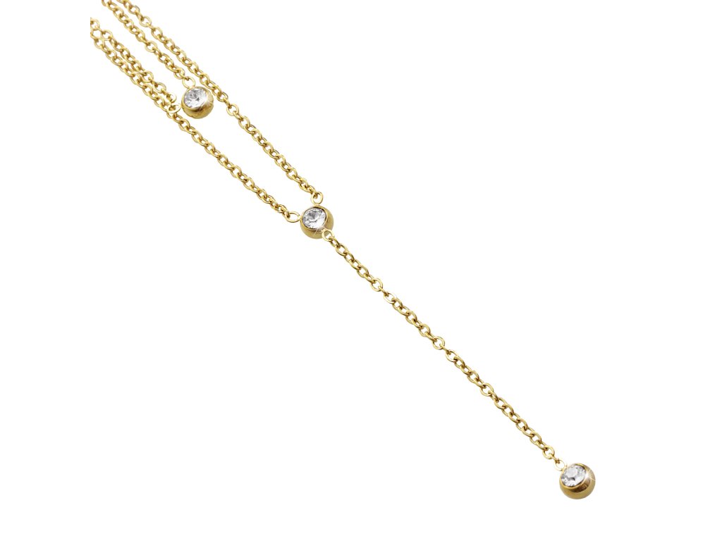 Zlatý ocelový náhrdelník dva řetízky a tři krystaly Swarovski Crystal