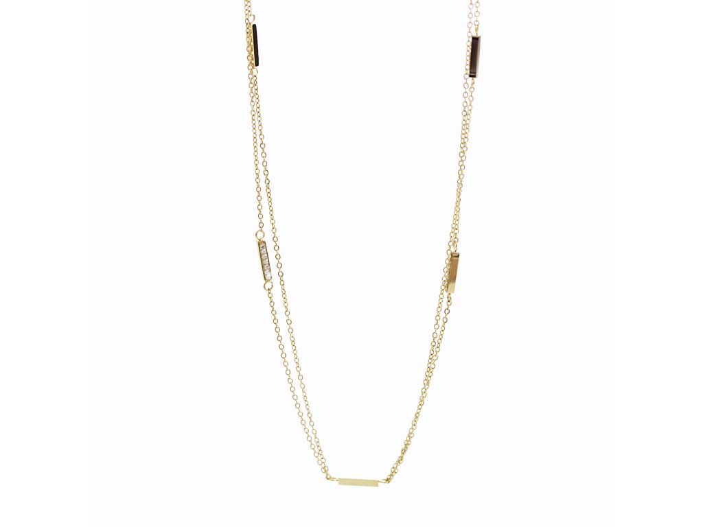 Zlatý ocelový náhrdelník dvojitý přerušovaný řetízek s krystaly Swarovski Golden Shadow