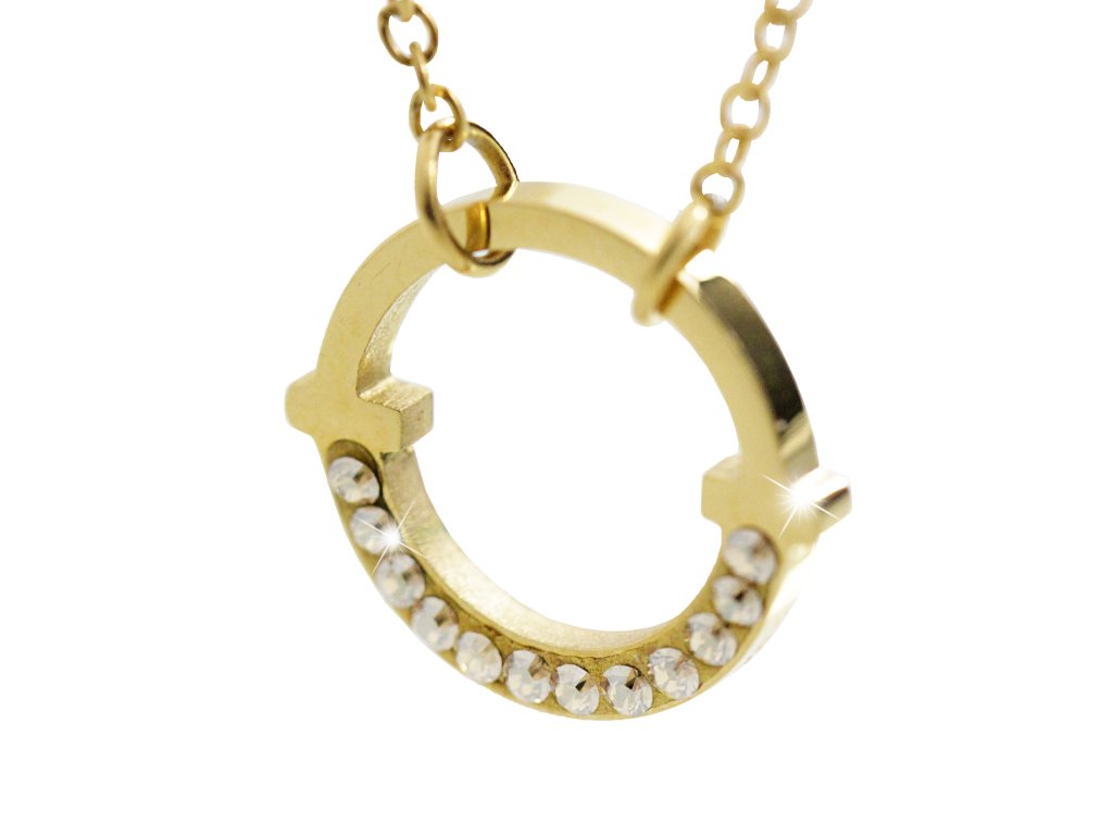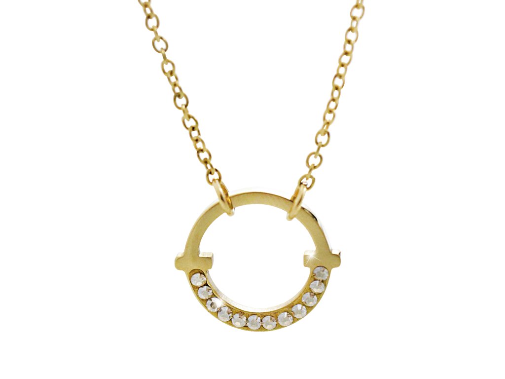 Zlatý ocelový náhrdelník kruh na půl osázený krystaly Swarovski Golden Shadow