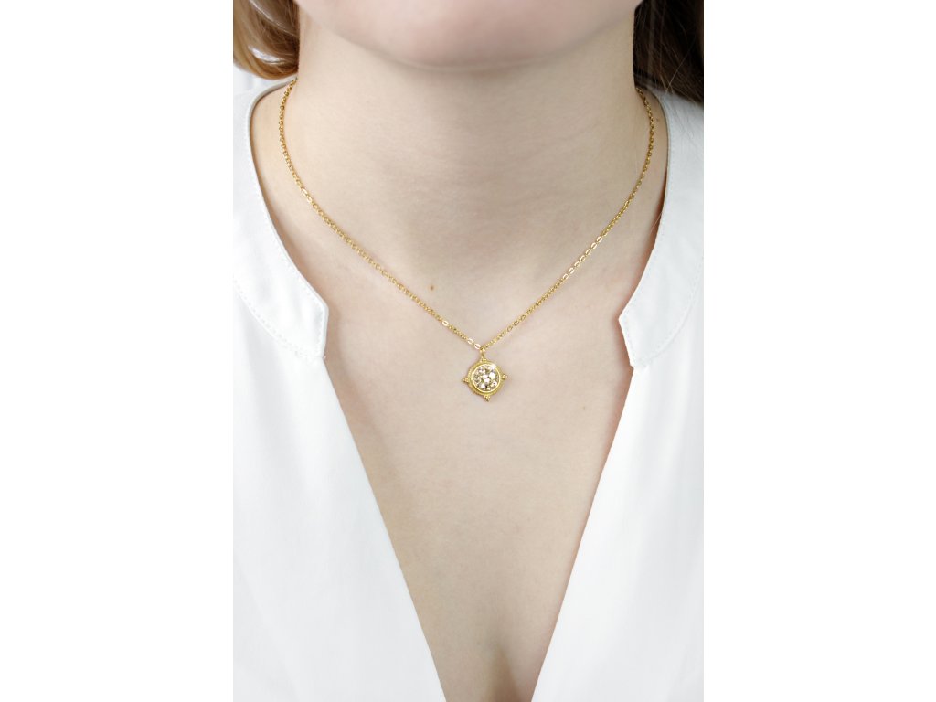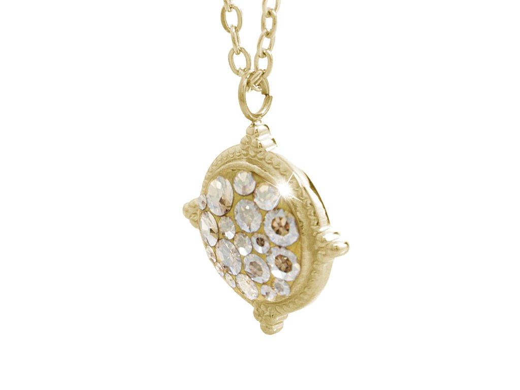 Zlatý ocelový náhrdelník medailonek kulatý s krystaly Swarovski Golden Shadow