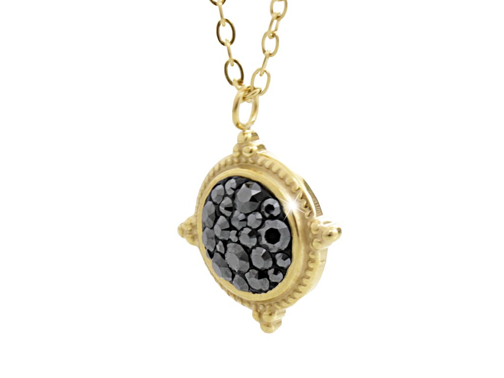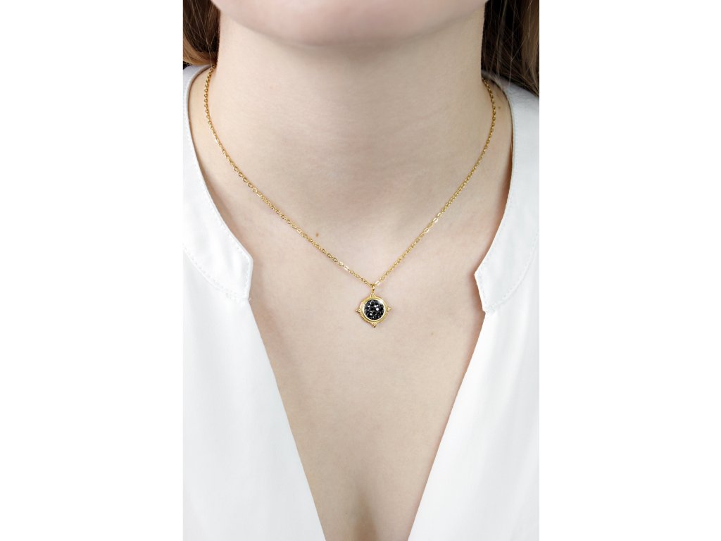 Zlatý ocelový náhrdelník medailonek kulatý s krystaly Swarovski Hematite