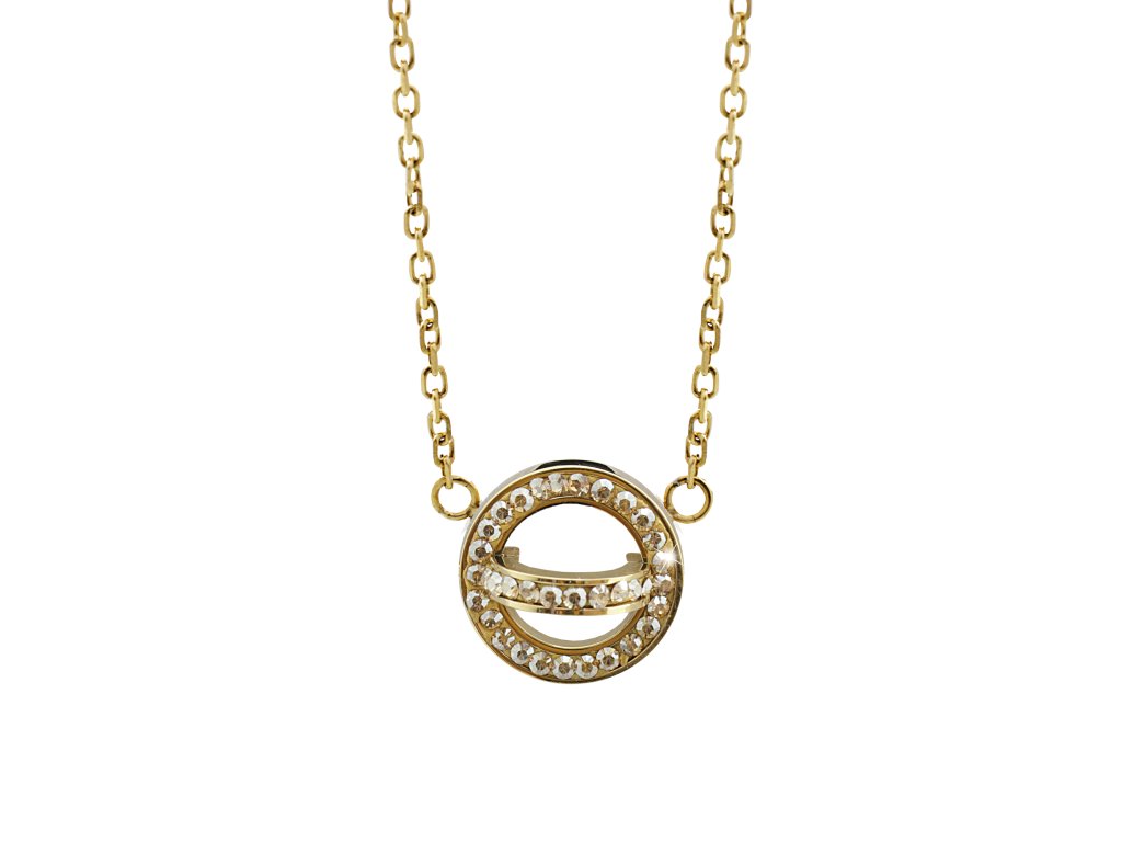 Zlatý ocelový náhrdelník oblouček na kruhu s krystaly Swarovski Golden Shadow