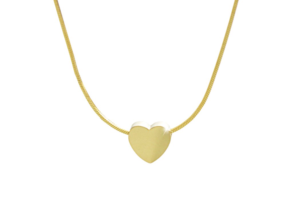 Zlatý ocelový náhrdelník placaté průvlakové srdíčko bez krystalů