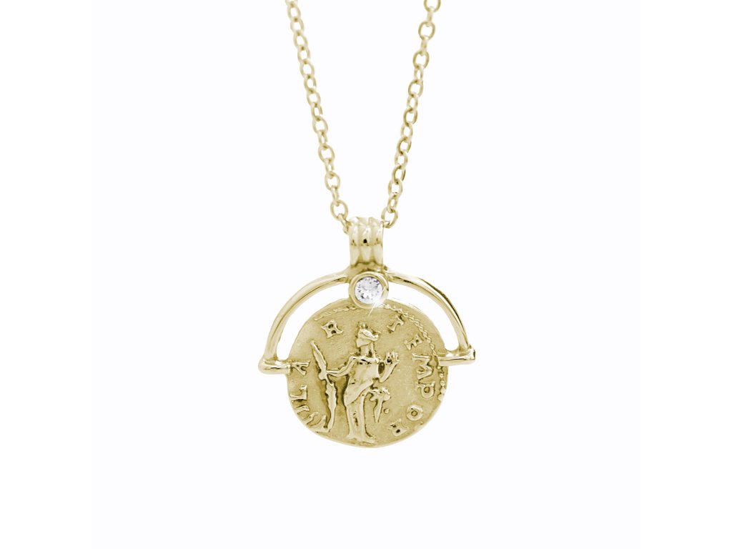 Zlatý ocelový náhrdelník stará mince s krystalem Swarovski Crystal