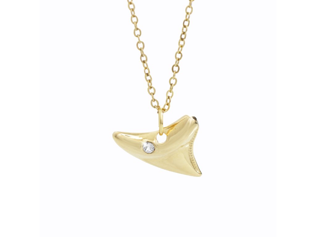 Zlatý ocelový náhrdelník žraločí zub s krystalem Swarovski Crystal