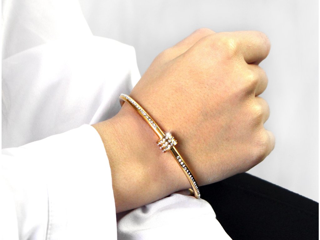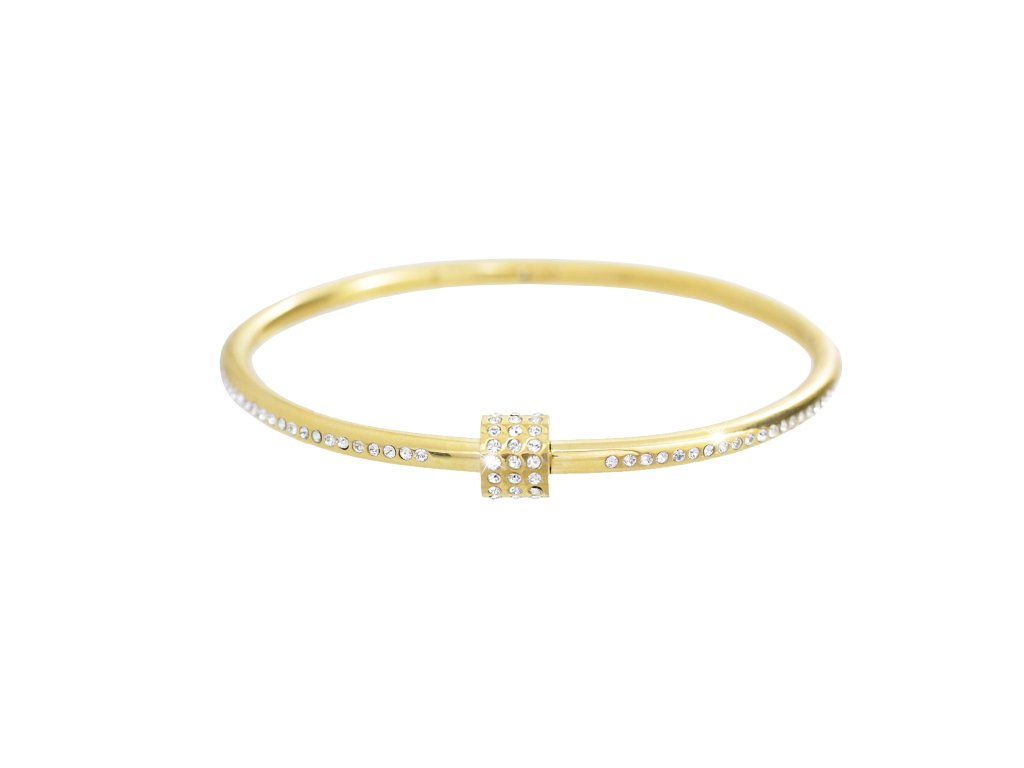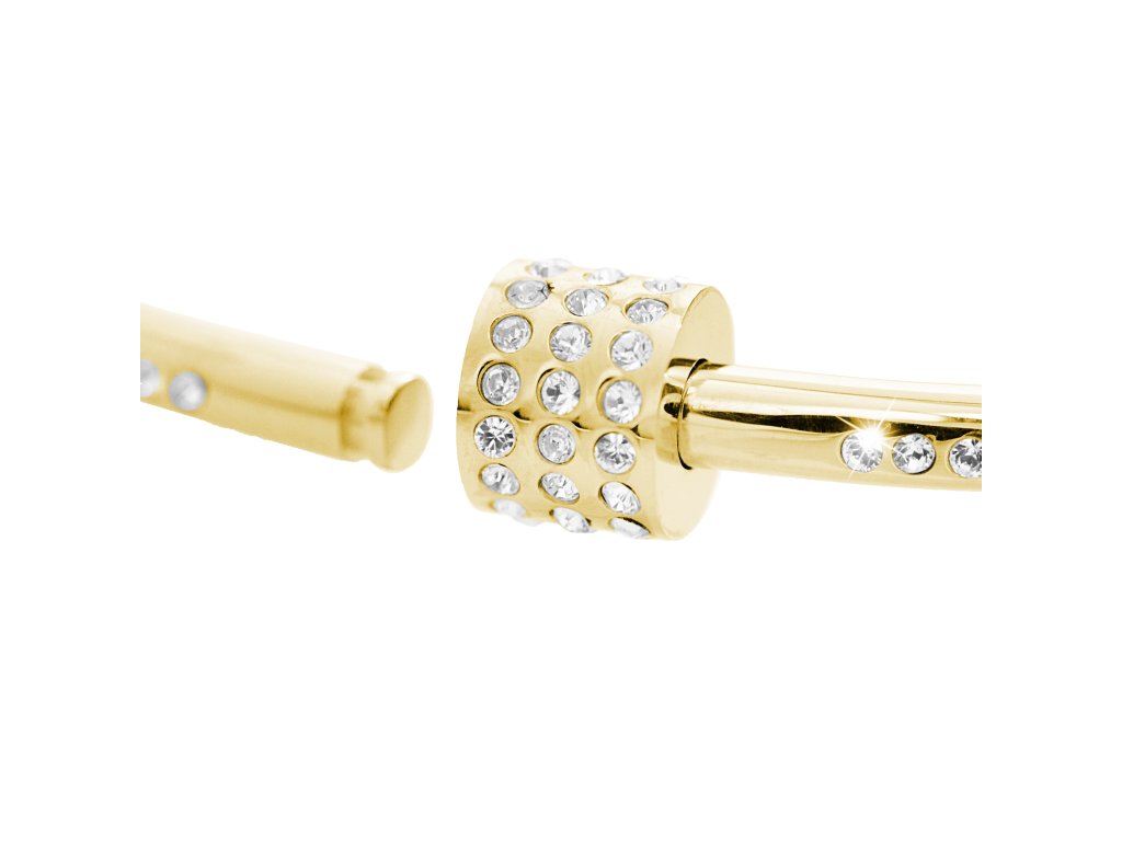 Zlatý ocelový náramek pevný s válečkem a s krystaly Swarovski Crystal