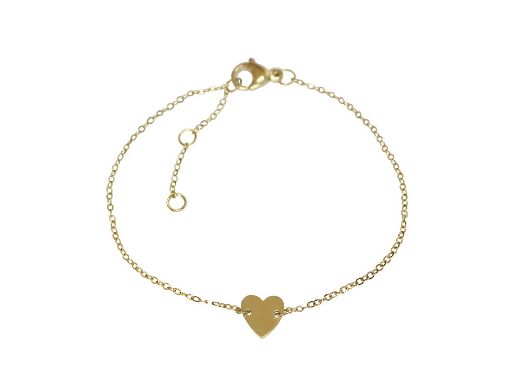 Zlatý ocelový náramek placaté srdíčko bez krystalů