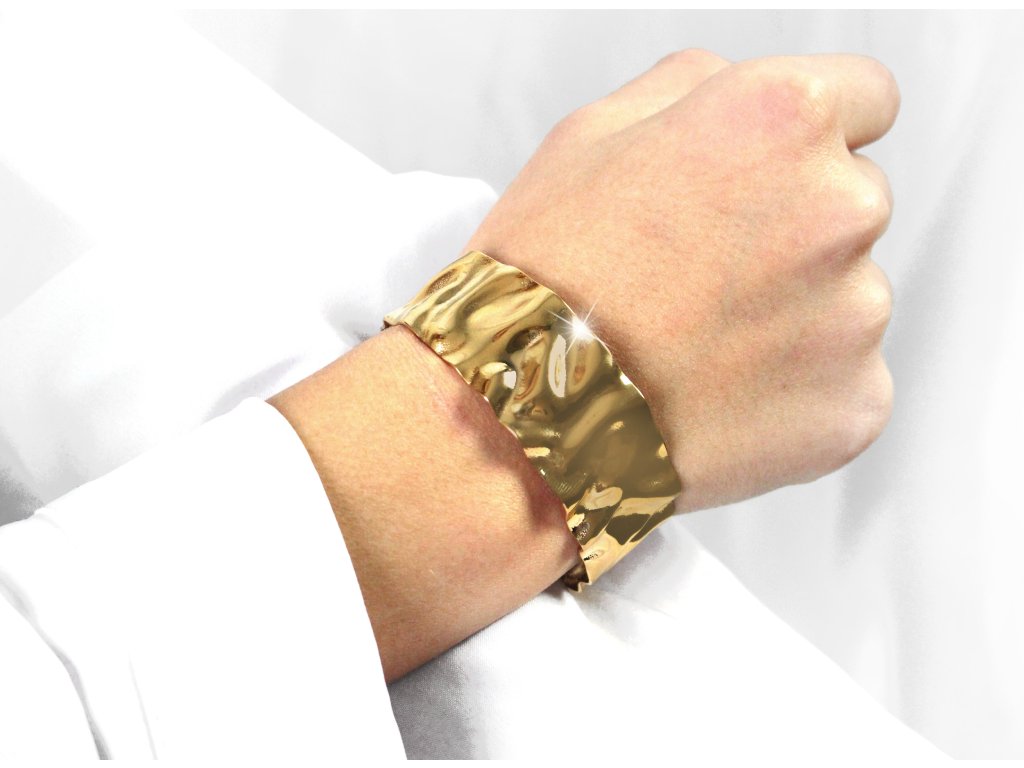 Zlatý ocelový náramek pomačkaný bez krystalů