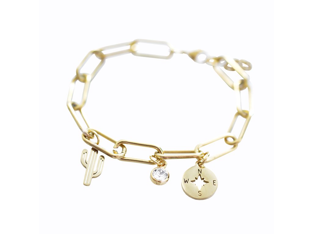Zlatý ocelový náramek řetěz s ověsy a s krystalem Swarovski Crystal