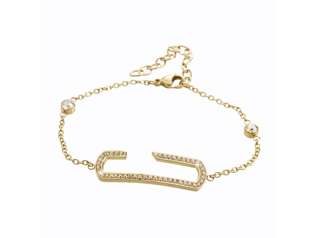 Zlatý ocelový náramek ve tvaru písmene c s krystaly Swarovski Golden Shadow